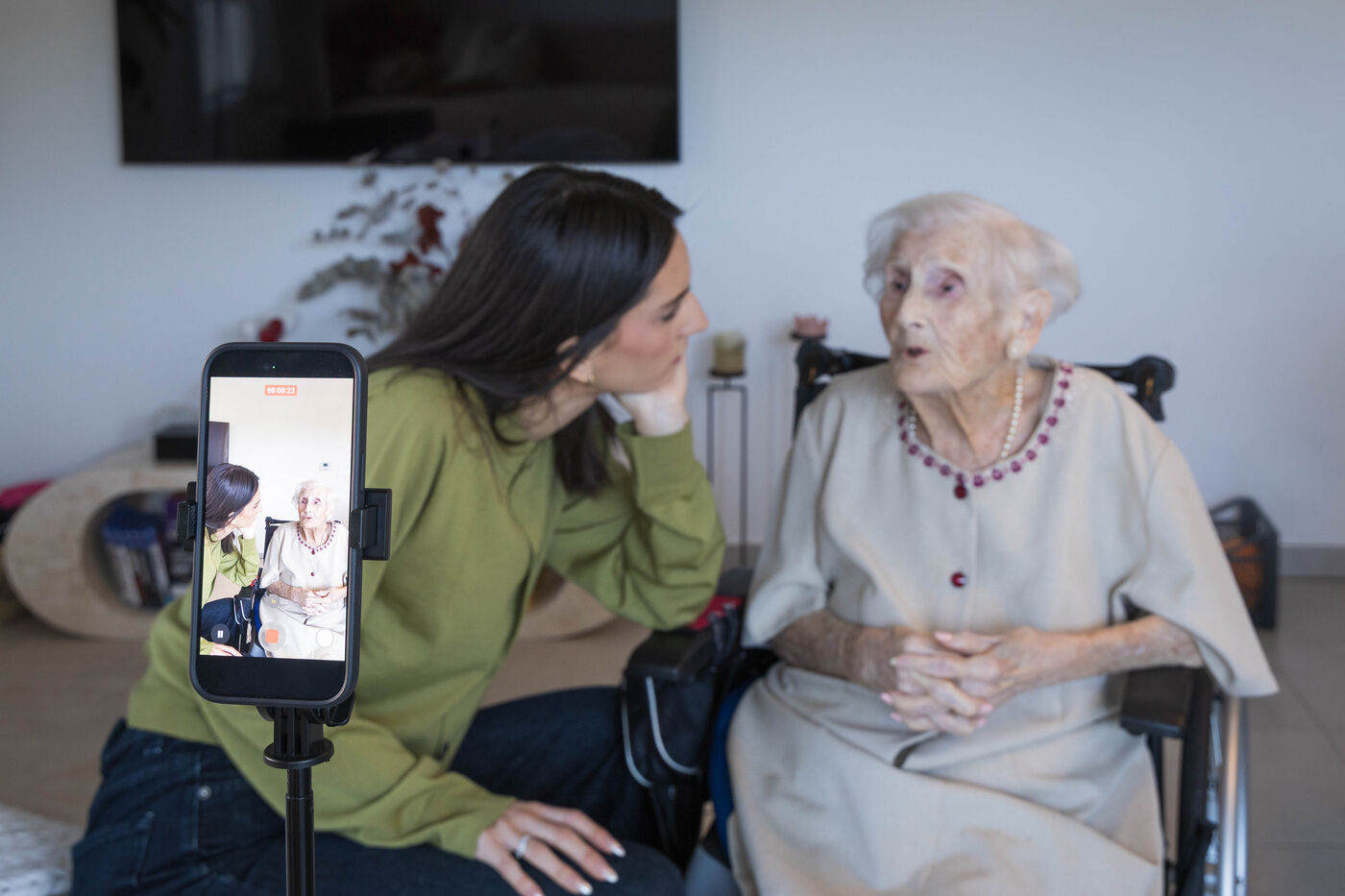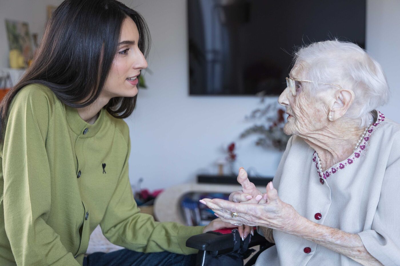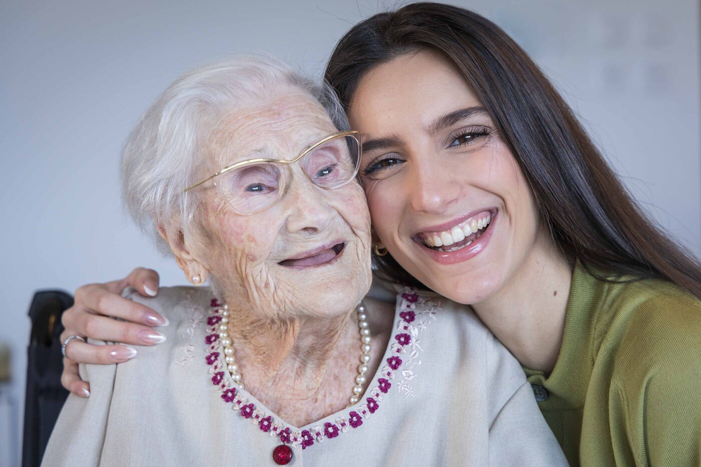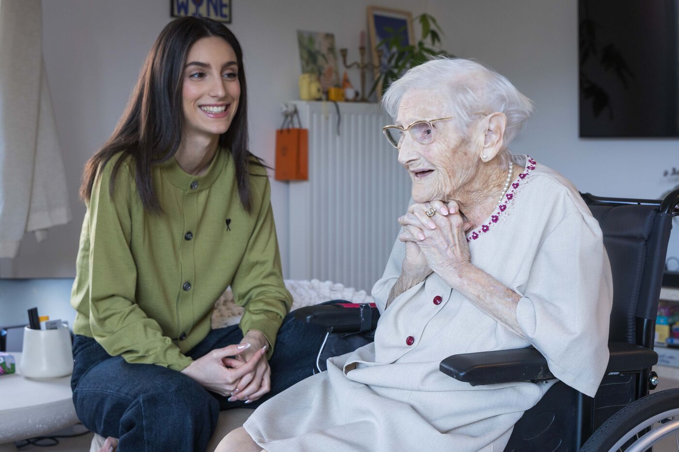 For several years now, Melissa Anton has been welcoming her great-grandmother Fernande into the home she shares with her partner. There is a 78-year age gap between them. Their duo has attracted 3 million followers on social media. It all started with a video of Melissa doing Fernande's nails while she recounted stories from her youth. The young woman filmed it, posted it on Instagram, and got 3 million views on the first video. Today, she is releasing a book with Fayard, entitled En la regardant vieillir, j'ai appris à vivre Watching her grow old, I learned how to live