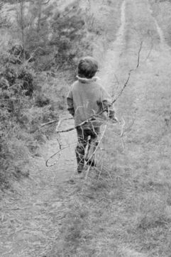 Humans and more-than-humans coexist through familiarity and complicity. Childhood is approached not as an age or an intimate narrative, but as a perceptual stance: a space of availability and intuition where reality and imagination, body and landscape, shift. Close to the ground, attentive to textures, gestures, and thresholds, the child engages in a direct relationship with the world, rooted in exploration and imagination, becoming a figure of transformation that links the intimate to the collective.