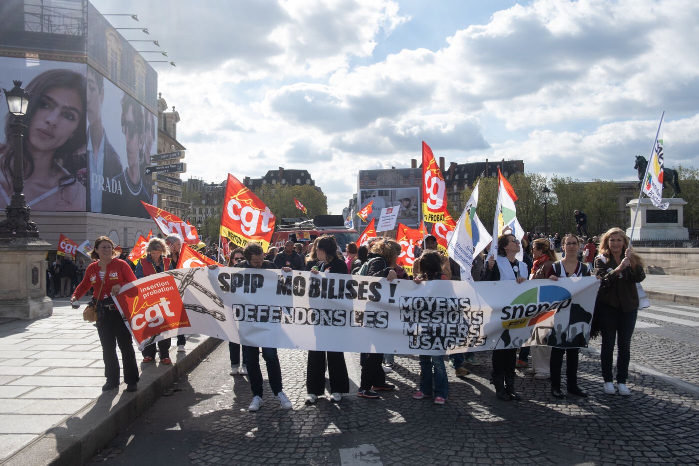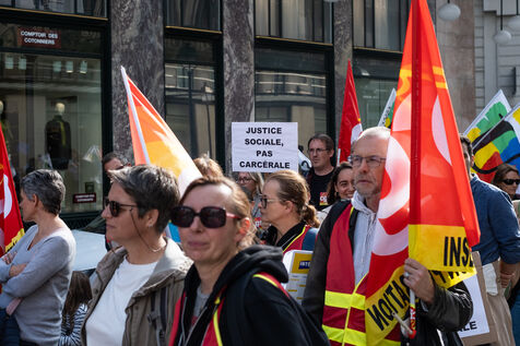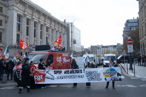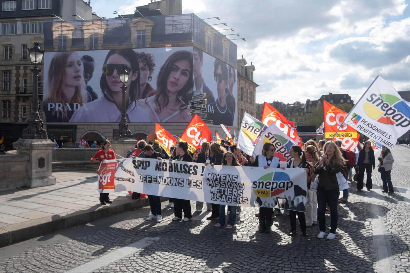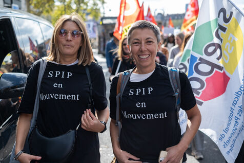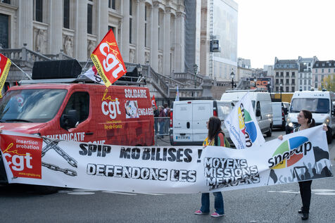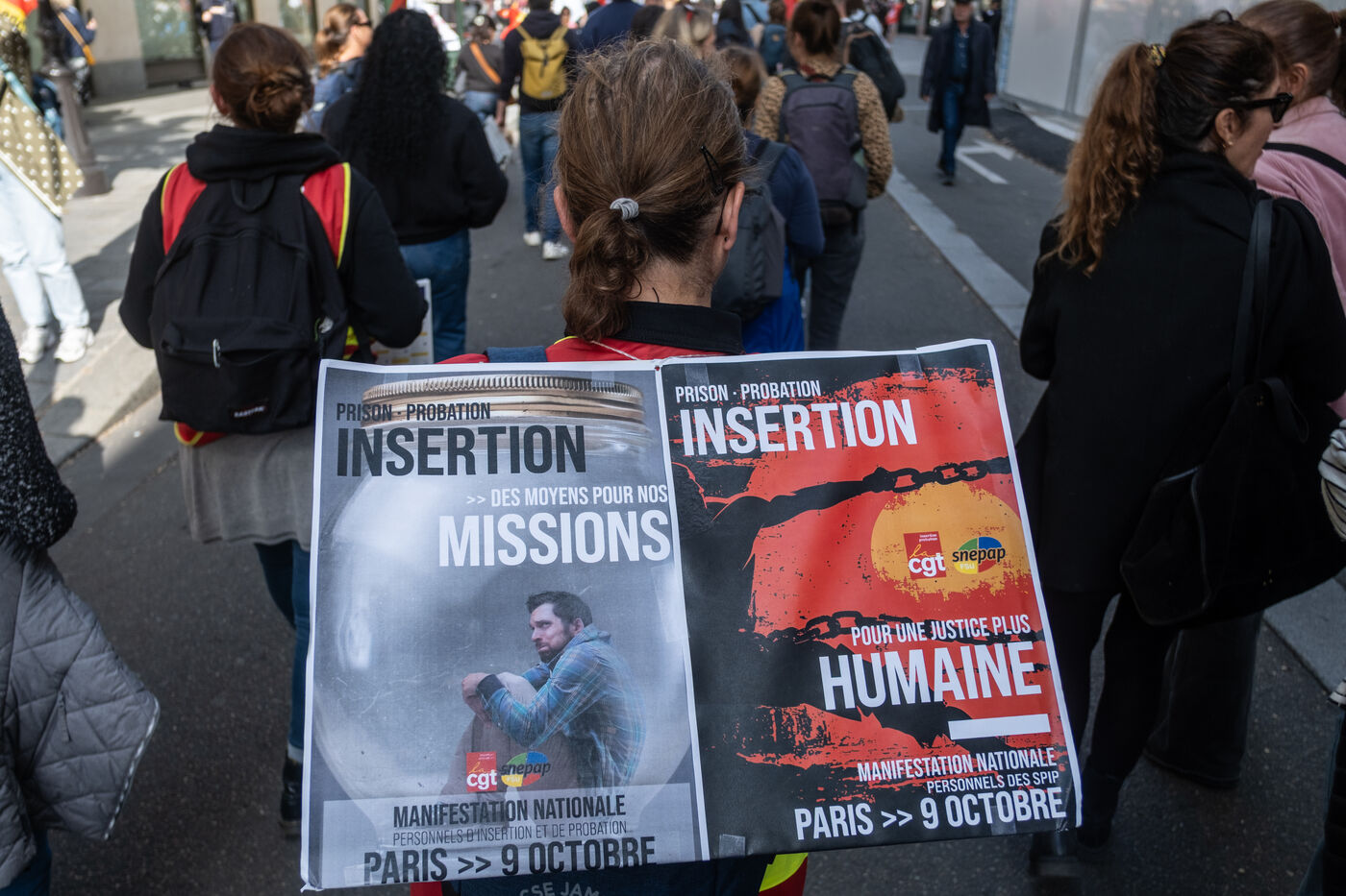 Following the strike call by the CGT Public Services Federation, demonstration by SPIP (prison integration and probation services), CGT and FSU federations against the security policy of the Minister of Justice in Paris, France, 9 October 2025.