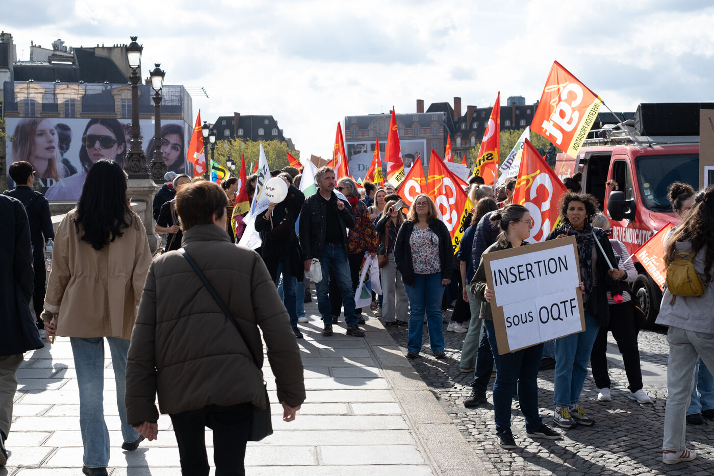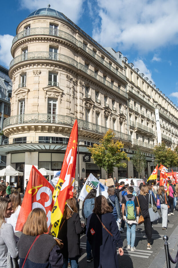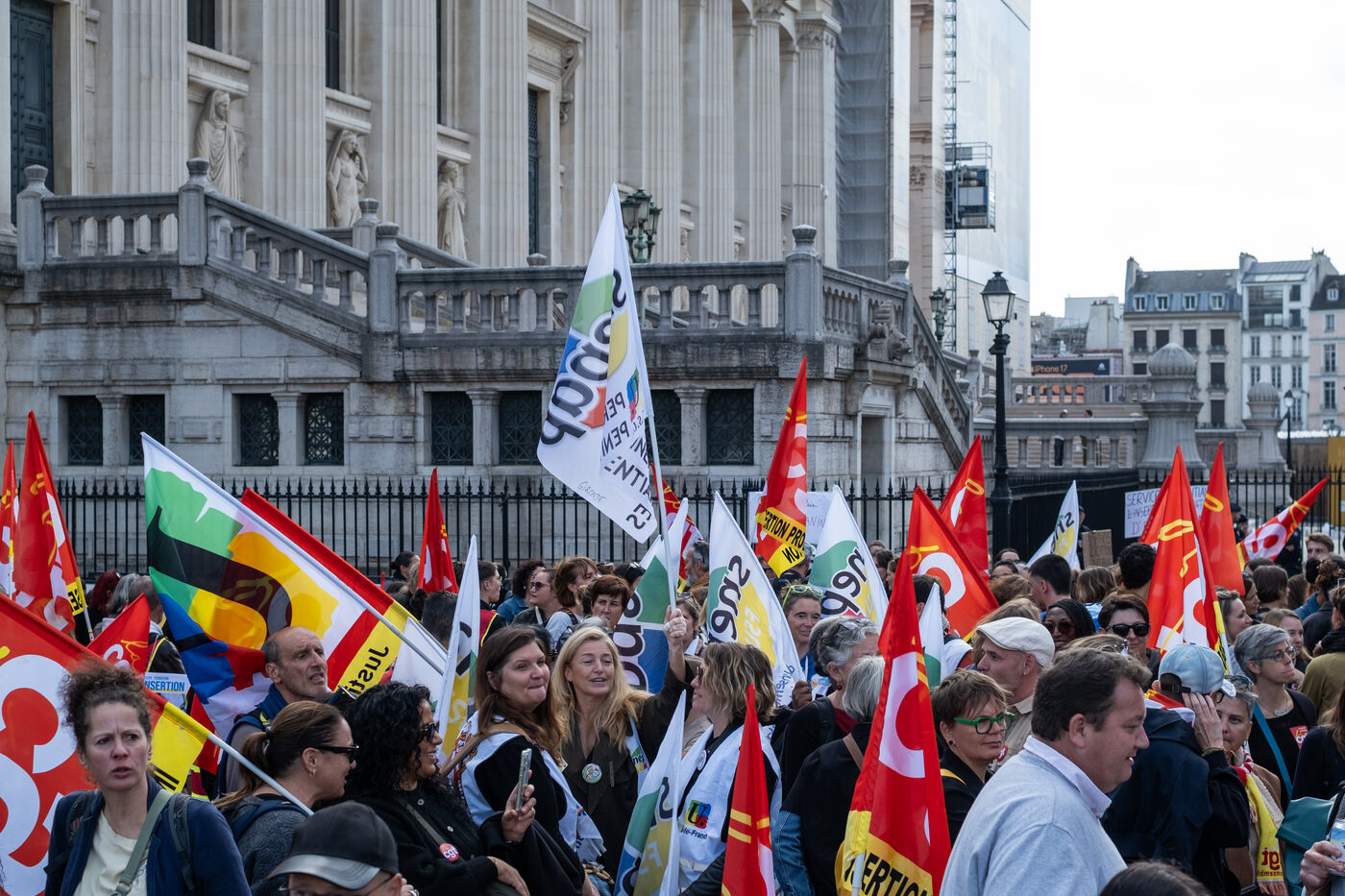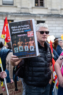 Following the strike call by the CGT Public Services Federation, demonstration by SPIP (prison integration and probation services), CGT and FSU federations against the security policy of the Minister of Justice in Paris, France, 9 October 2025.