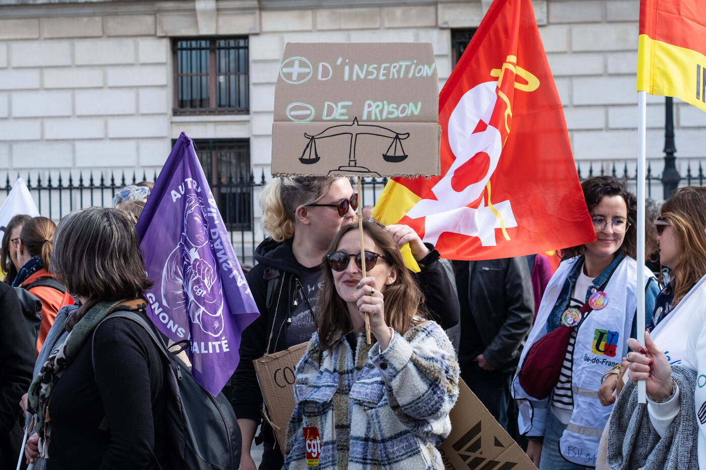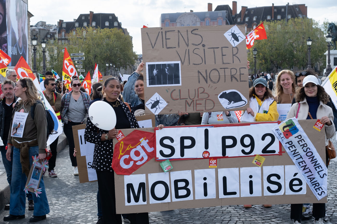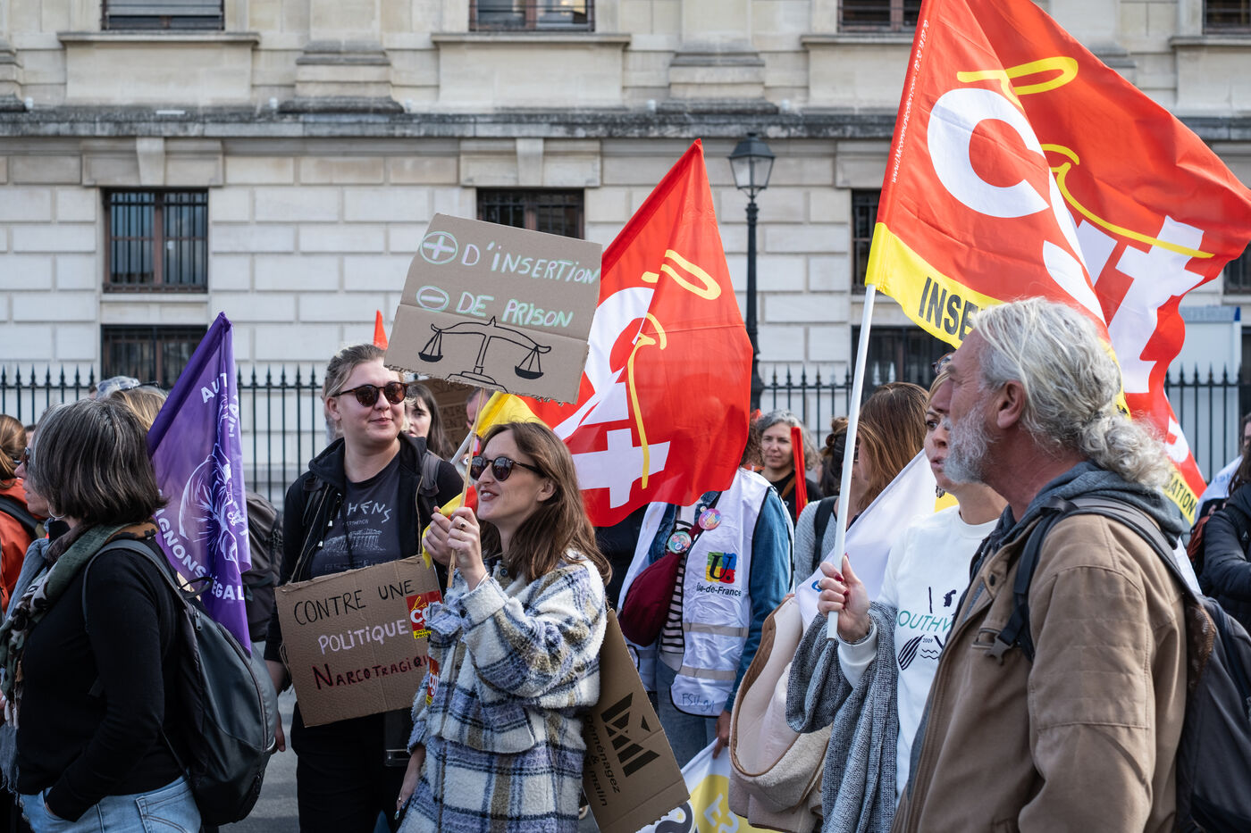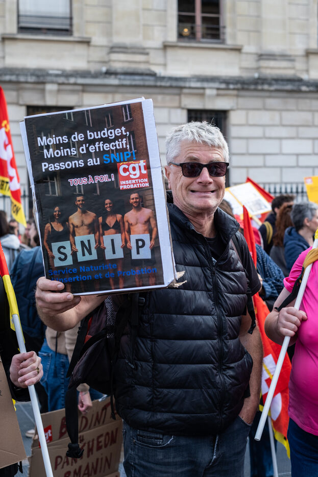 Suite a l appel de greve de La Federation CGT des Services publics, manifestation des SPIP - services penitentiaires d insertion et de probation - , des federations CGT et FSU contre la politique securitaire du Garde des Sceaux a Paris, France, 9 octobre 2025.