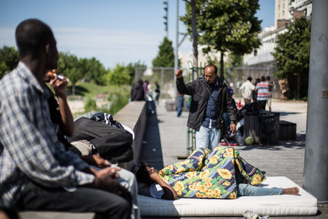 « Nous voulons des logements », « Nous demandons l'asile »... Quelque 1 800 personnes ont manifesté derrière ces pancartes à Paris dans la soirée, mardi 16 juin, en solidarité avec des migrants. Le cortège, encadré par un important cordon de gendarmes mobiles, est parti du métro La Chapelle, où environ 350 personnes étaient installées depuis plusieurs mois, jusqu'à l'évacuation du campement, le 2 juin.
