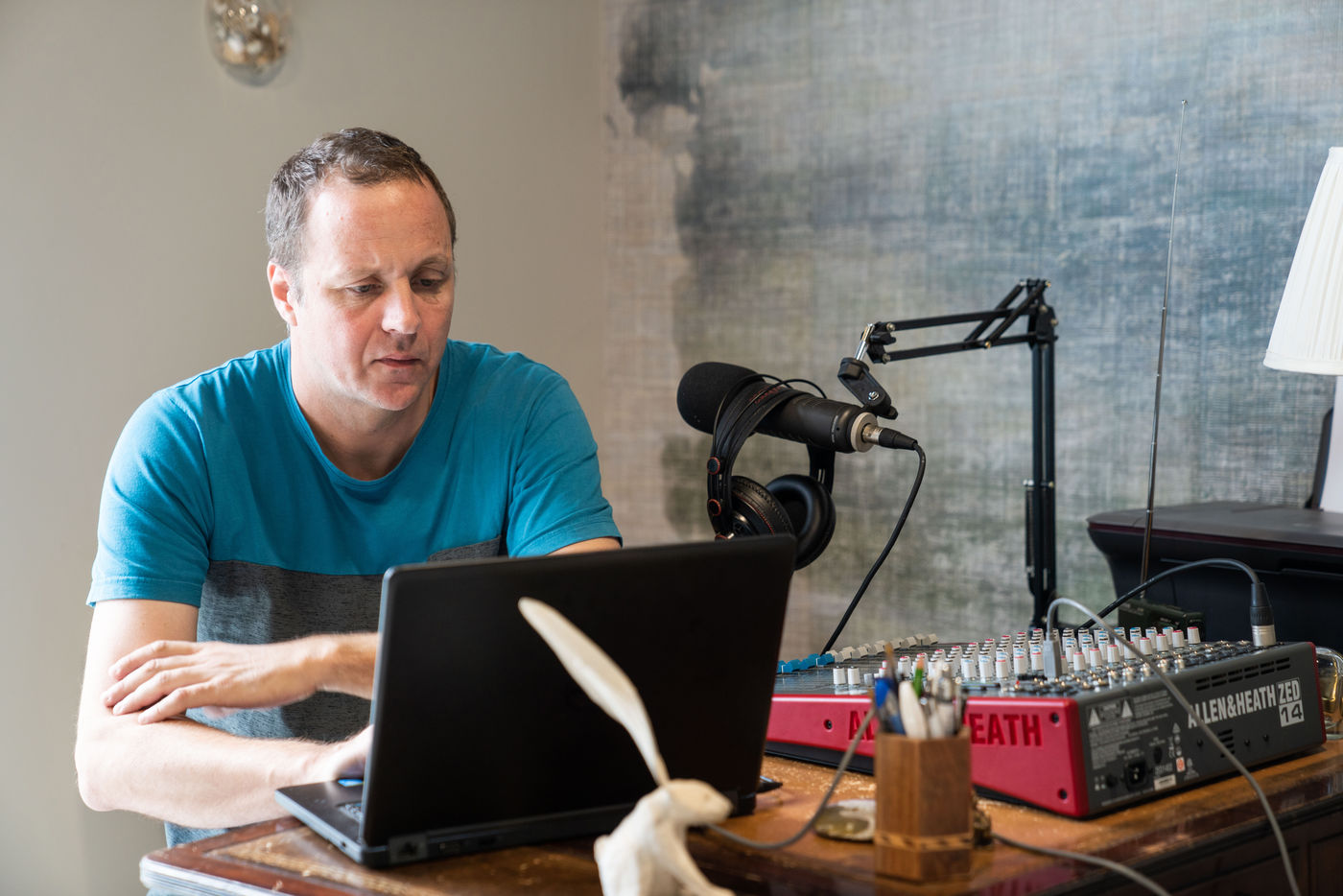 Auros, 7 June 2022. Portrait de Sylvain Clament, fondateur de Radio For Peace International. Une radio pour contrer la censure et la propagande dans les territoires où elle est pratiquée.