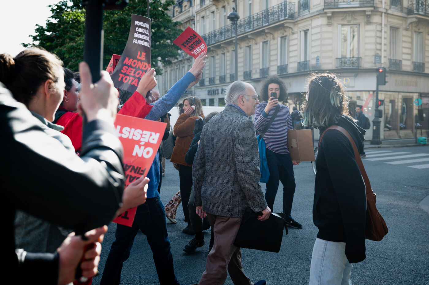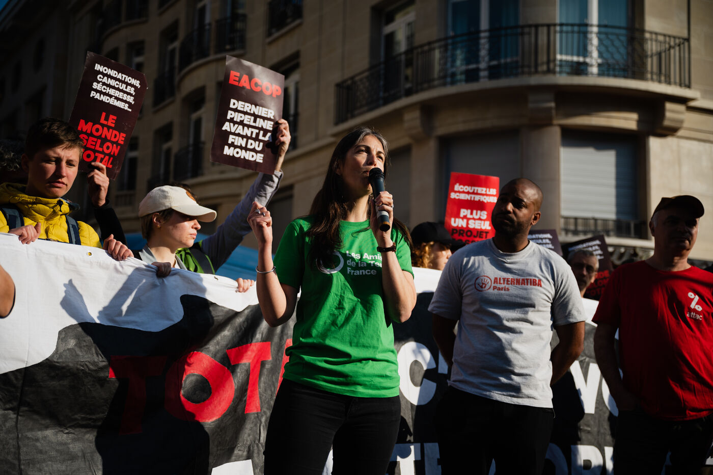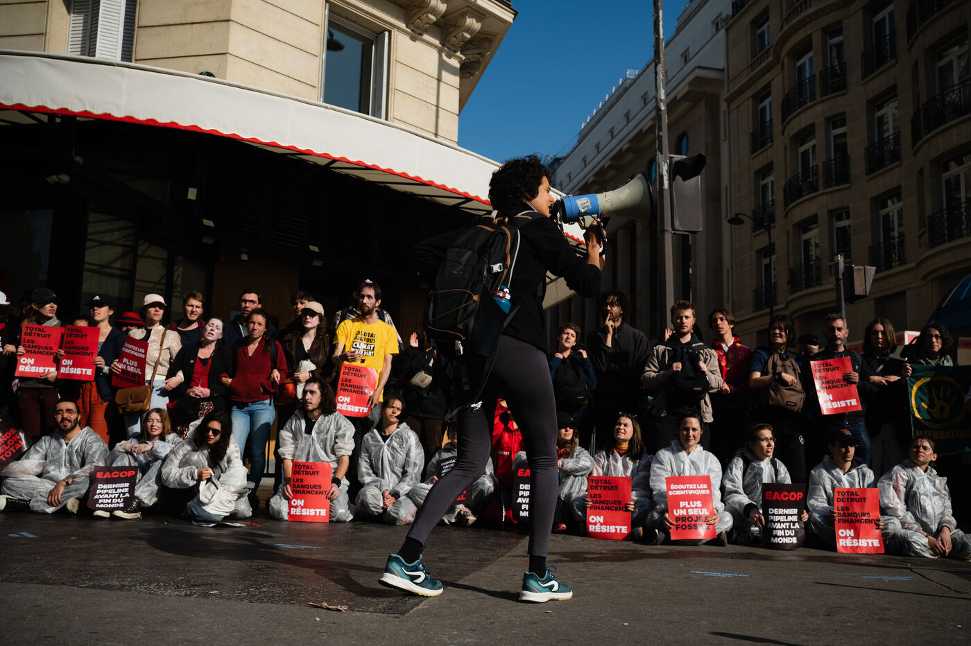 Hundred of activists from several associations in the climate movement, including Greenpeace, Alternatiba and 350org, mobilized this Friday, May 26, 2023 in front of the Salle Pleyel to block the Annual General Meeting of Total Energies.The aim was to put pressure on the Chairman Patrick Pouyanné and his shareholders to halt all fossil fuel projects, in particular the EACOP project, a giant pipeline in Uganda and Tanzania.