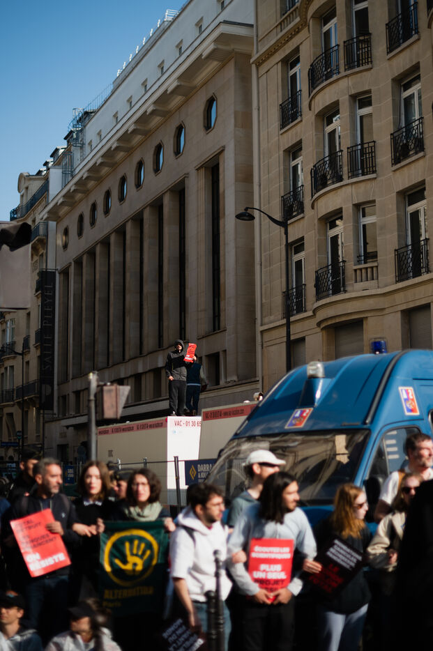 Des centaines militants de plusieurs associations du mouvement climat, dont Greenpeace, Alternatiba et 350org, se sont mobilisés ce vendredi 26 mai 2023 devant la salle Pleyel pour bloquer l'Assemblée Générale annuelle de Total Energies. L'objectif : Faire pression sur son president Patrick Pouyanné et ses actionnaires pour qu'ils cessent tout projet d'exploitation d'énergies fossiles, notamment le projet EACOP, une pipeline géante en Ouganda et en Tanzanie.