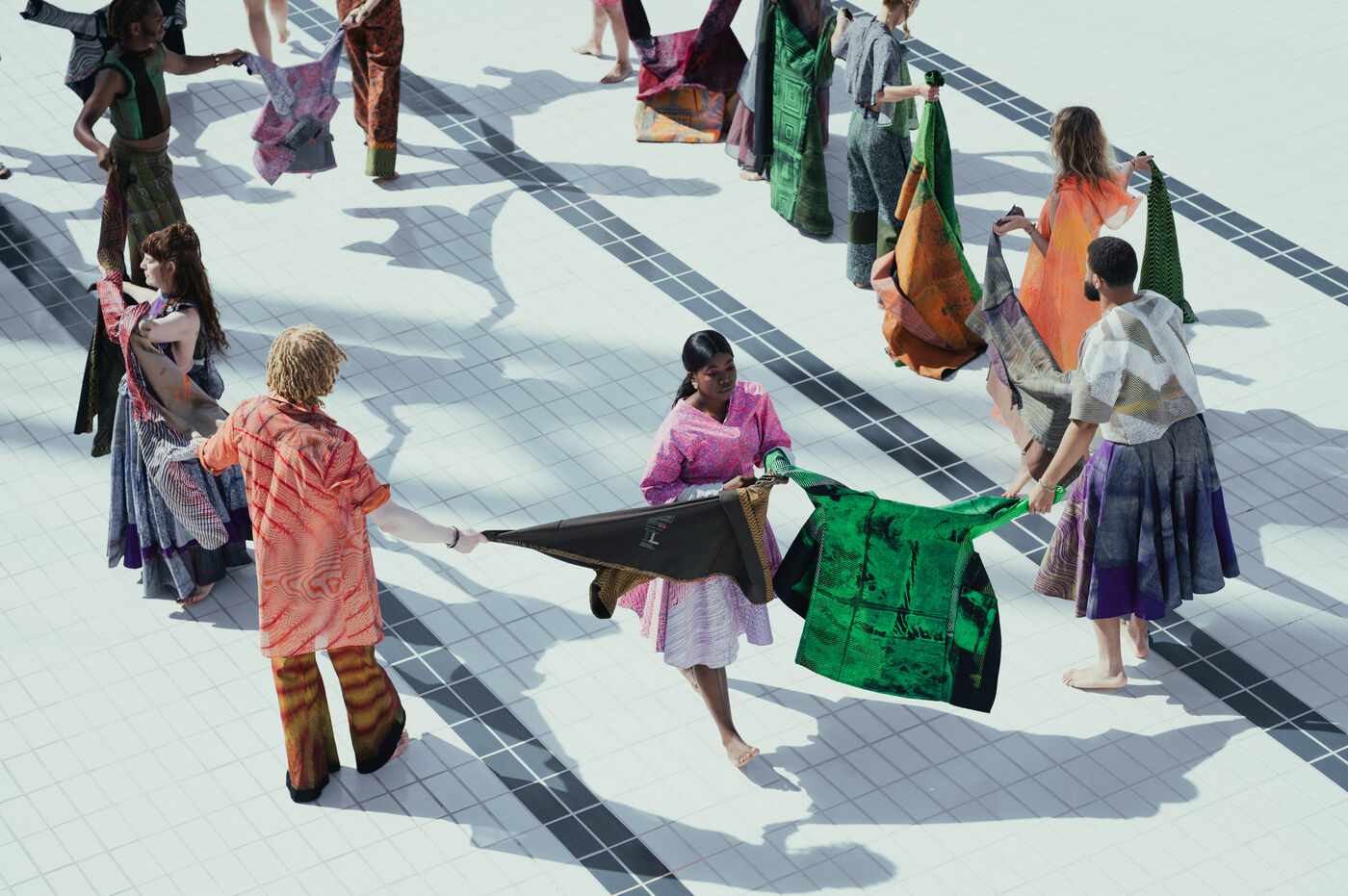 Second edition of L'heure du bain (Bath Time) at the Roger Le Gall swimming pool in Paris on August 31, 2025. The annual L'heure du bain event is a concept of artistic performances taking place in an empty pool, imagined by Julie Destombes of the Petit Bassin production office, and designed to celebrate the refilling of the previously drained pool and to open the pool at a time when it is usually closed. This show allowed people who responded to a call for participation (local residents, neighbors, regular pool users, etc.) to parade and dance alongside professional dancers from the Kinetikos ensemble.