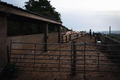 When I find Claire at the shepherd's hut, it is around 5:30. It is early June. The weather is mild and the sky is overcast, casting a diaphanous light over everything. And so much the better, because the day before, it was very hot and the light was very bright. The mountain is quiet, except for the sound of the ewes bells and the song of a few birds rising in the groves not far away. The sheep are a pretty powder pink: they spend the night in a cave above, where the ground is red earth.