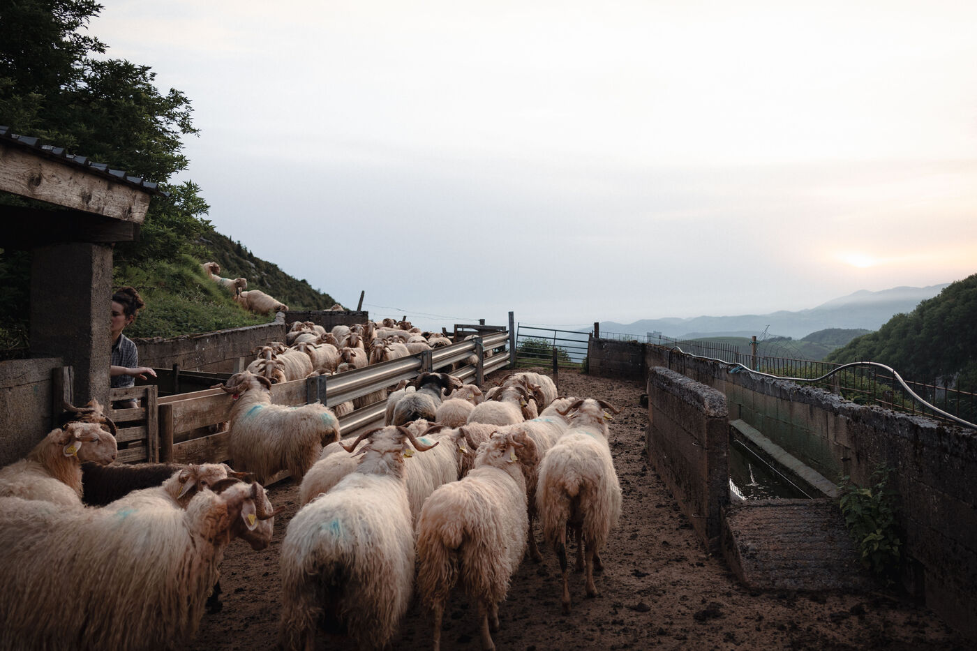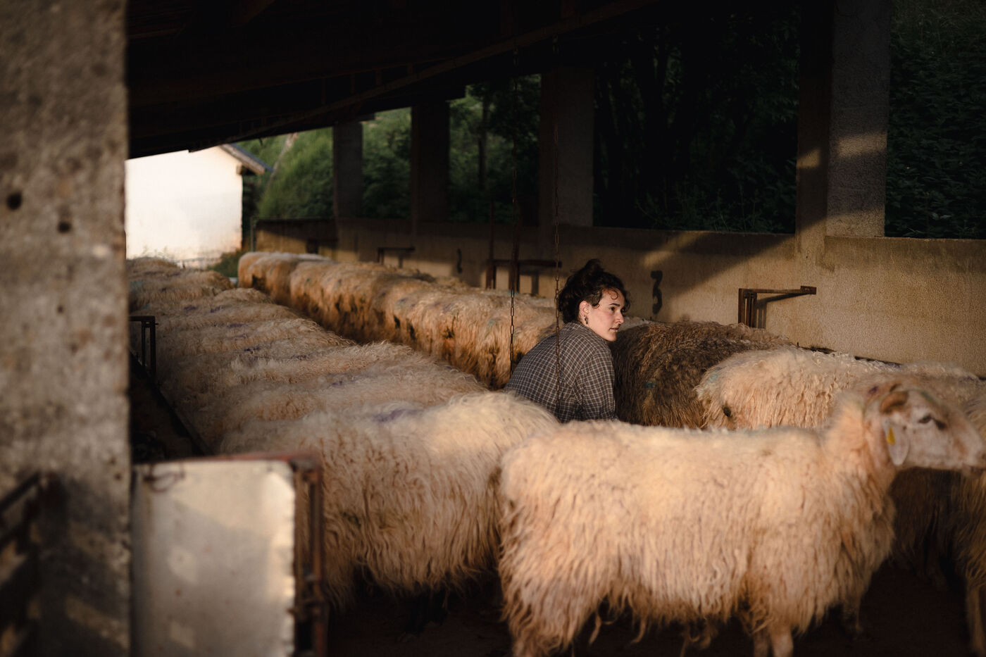At the time of this series, Claire, a very experienced young Basque shepherdess, is part of the replacement service. That is to say, she replaces an absent or sick shepherd. In this case, she replaces a shepherdess who is on maternity leave. But that does not change the daily work that must continue to be done with the ewes. It is June, the herd is in the mountain pastures, at an altitude of about 1,000m. Every morning, the sheep must be gathered at the coral and milked. In the mountains, milking is done by hand. The milk is poured, as it is, into a can after being filtered to stop dust, twigs and other impurities.