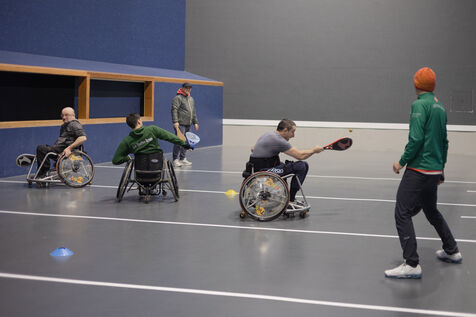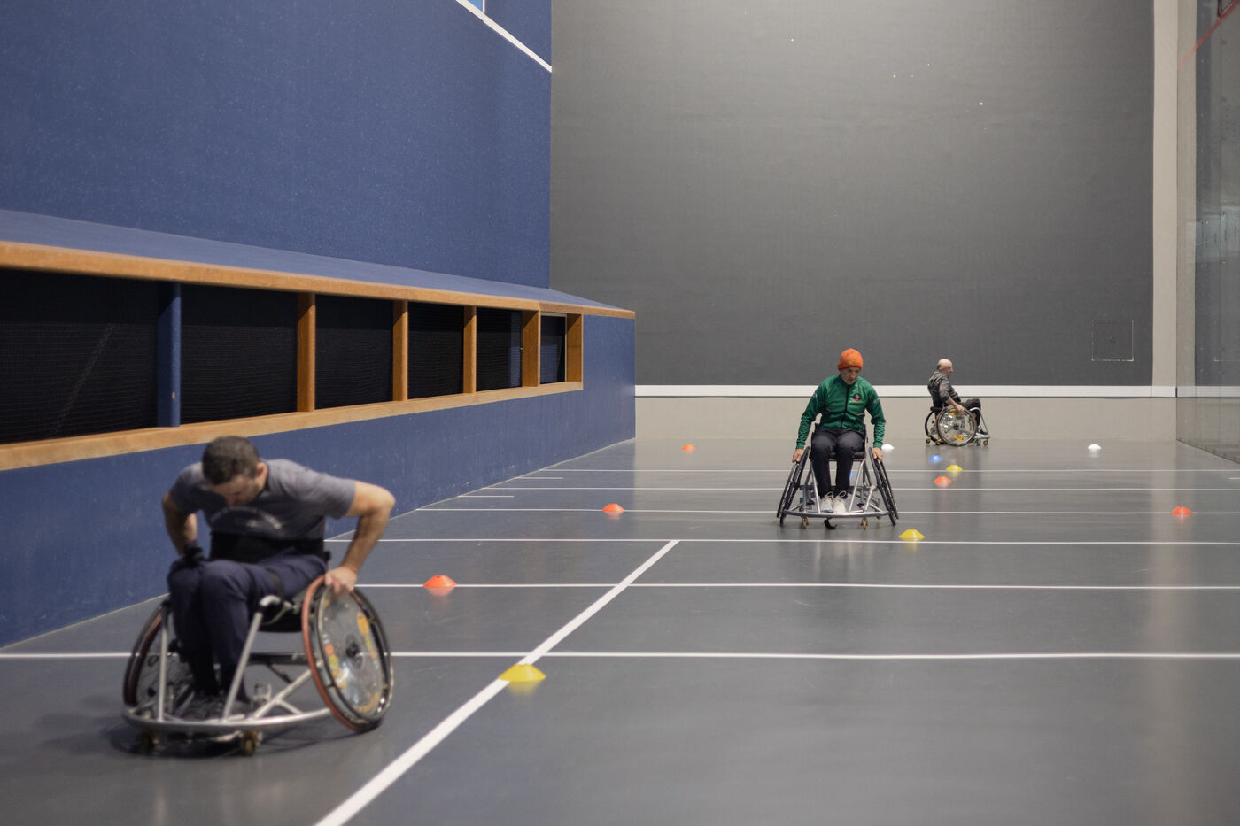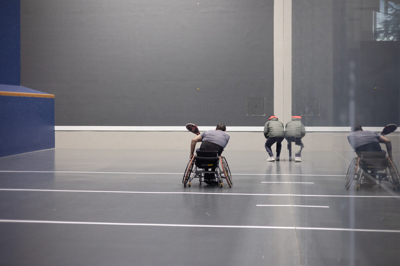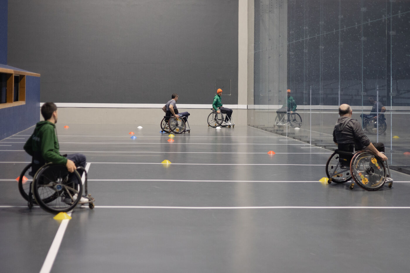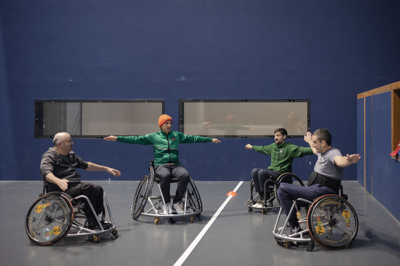 oldy… A small village in the Basque Country, more than an hour from the big cities on the coast and, what’s more, away from the main roads. On this Tuesday afternoon in December, the village, which has about 550 inhabitants, is deserted. Just a few cars in front of the Hoxari trinquet, some of them displaying a card with the handicap logo. Tuesday is training day. At the wall on the left of the village, a handful of people meet around 3pm for a two-hour session: first, a warm-up, then speed and agility exercises and finally, a game.