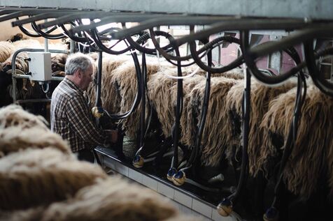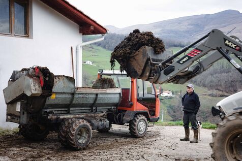 But he doesn't just do that, he milks the sheep, makes cheese, he looks after sick sheep or those with lameness, he takes care of lambing, suckling the lambs when they are not sufficiently alert or when their mothers do not like them, he also takes care of the fifteen suckler cows and their calves. In the summer, from May to the end of October, he watches over the herd that has gone on a transhumance to the peaks located on the borders of Navarre. In winter, he takes care of taking the replacement lambs and their mothers, as well as the lambs from the previous year to meadows located lower in the foothills, because there is not enough space on the farm or on the 7 hectares that are rented nearby. He cleans the edges of the meadow with a brush cutter. In winter, when the sheep are in the sheepfold, he distributes the fodder to them.