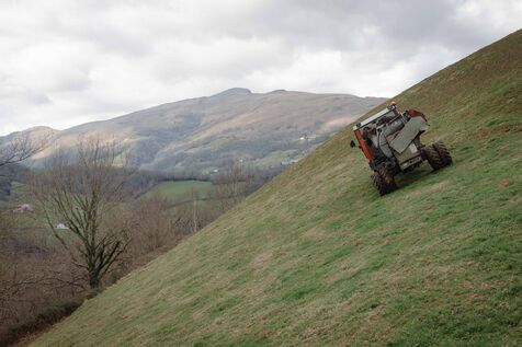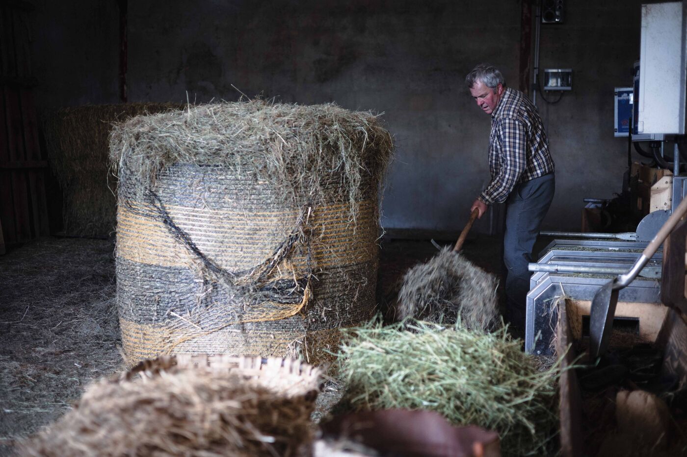 Peio has always worked very hard. He still pays the physical price today. Because his farm is not easy to work. It is located at the bottom of a ridge, between two deep wooded valleys to the north and fern forest to the south. He only owns about fifteen hectares, of which less than ten are particularly steep meadows, located above and below the house. It can only be accessed on foot or with machines adapted to steep slopes and which come from Switzerland. These machines are smaller than traditional tractors and have a much lower centre of gravity, which gives them more stability. But despite everything, the slopes are such that working with hay, spreading manure or cleaning meadows remains extremely dangerous. On the farm, only Peio does his very specific work.