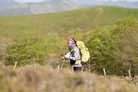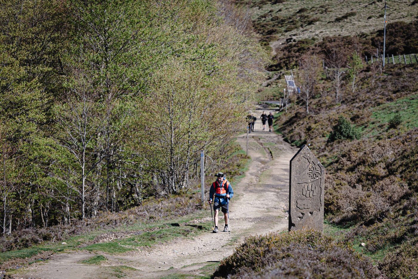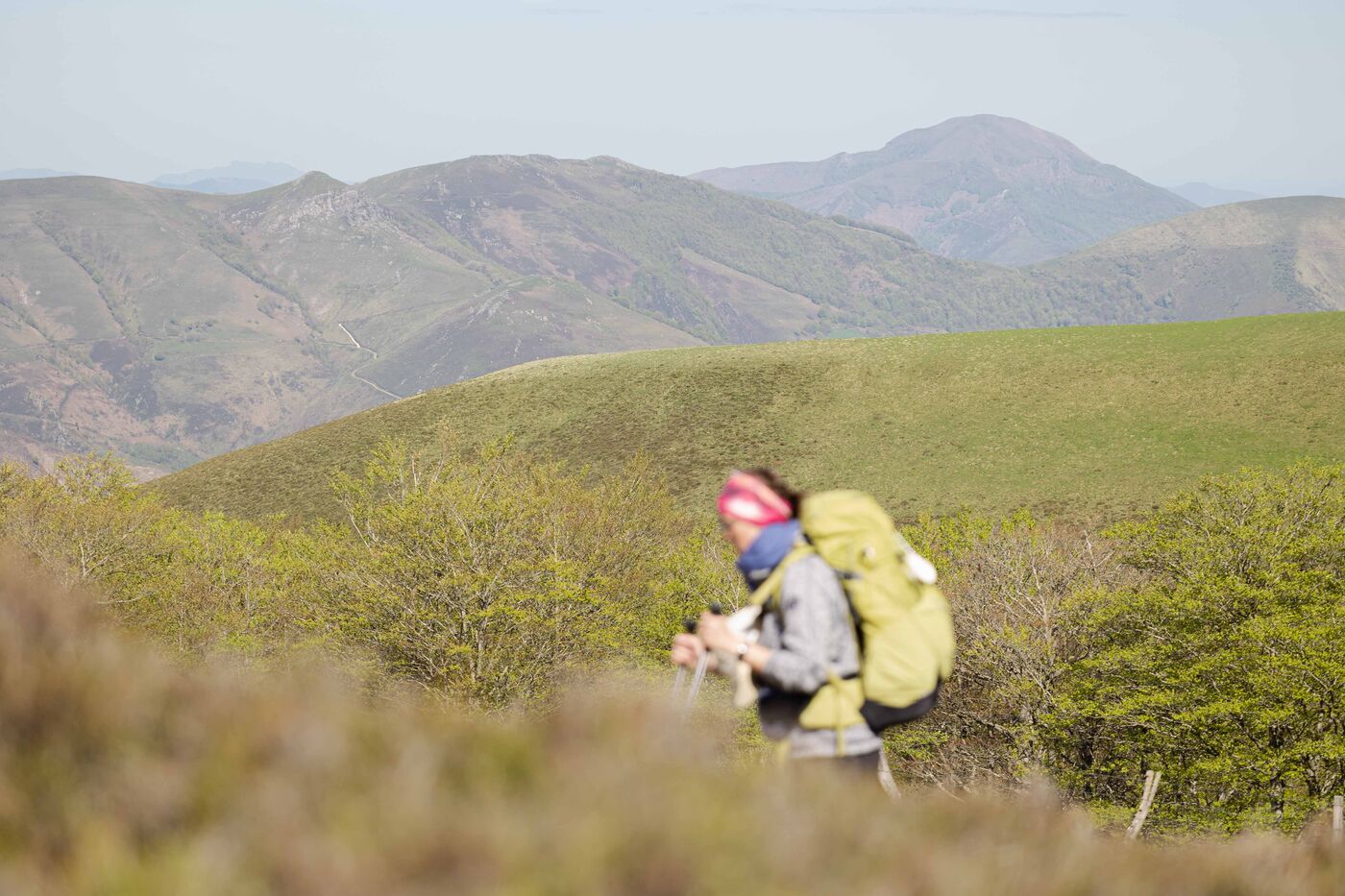 Une fois parvenus à la Croix Thibault, au-dessus de Saint Jean Pied de Port, les pèlerins en route vers Saint Jacques de Compostelle quittent la petite route de montagne pour emprunter le sentier qui leur permettra de traverser la montagne, mais aussi la frontière franco-espagnole.