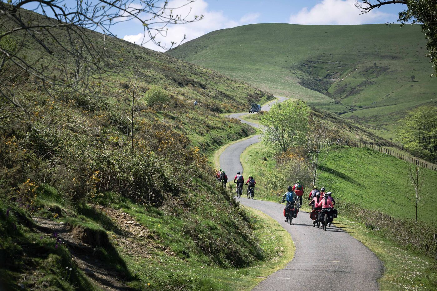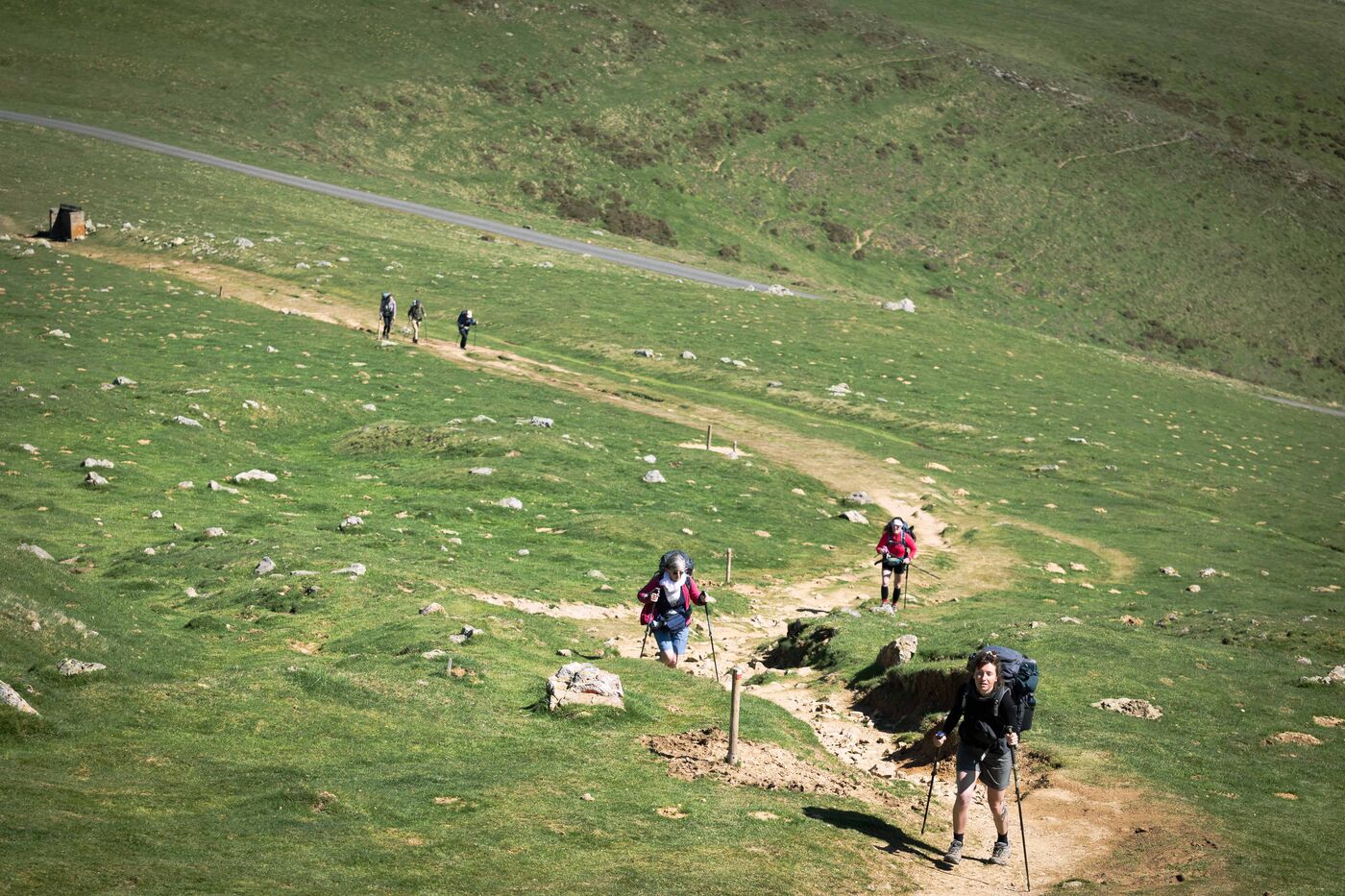 Le passage se fait quelques centaines de mètres avant la fontaine de Roland et le Col de Bentarte. Une large piste les emmène ensuite au Col de Lepoeder, à quelques 1.430m d'altitude, pour redescendre côté espagnol, vers Roncevaux et sa magnifique abbaye.