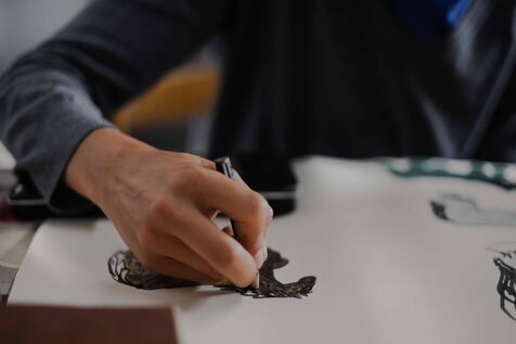 For Pyrenees paints with different inks, pencils... in short, anything that leaves a mark on paper! Her subjects are real or phantasmagorical animals, sometimes both... these rolls of sketches resemble the walls of the Lascaux cave!