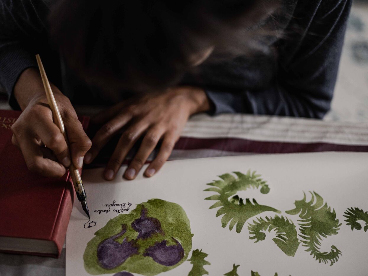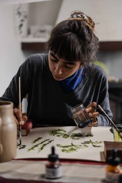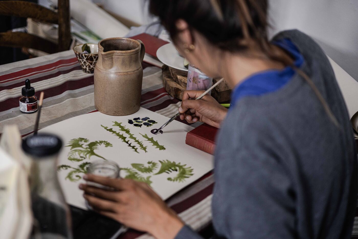 Her drawings are also plant-based: ferns, heather... sketched in a few seconds.