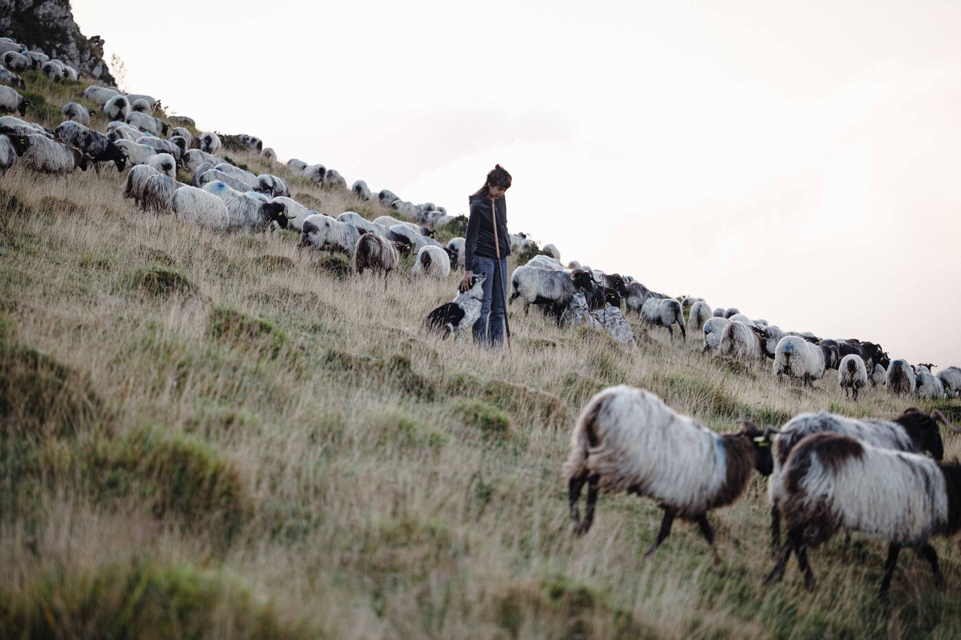 Living in a cabin for almost 5 months, at an altitude of nearly 1,000m, and in all weathers, she led her flock of Black-headed Manex sheep (Buru beltza) up the mountainside every day.