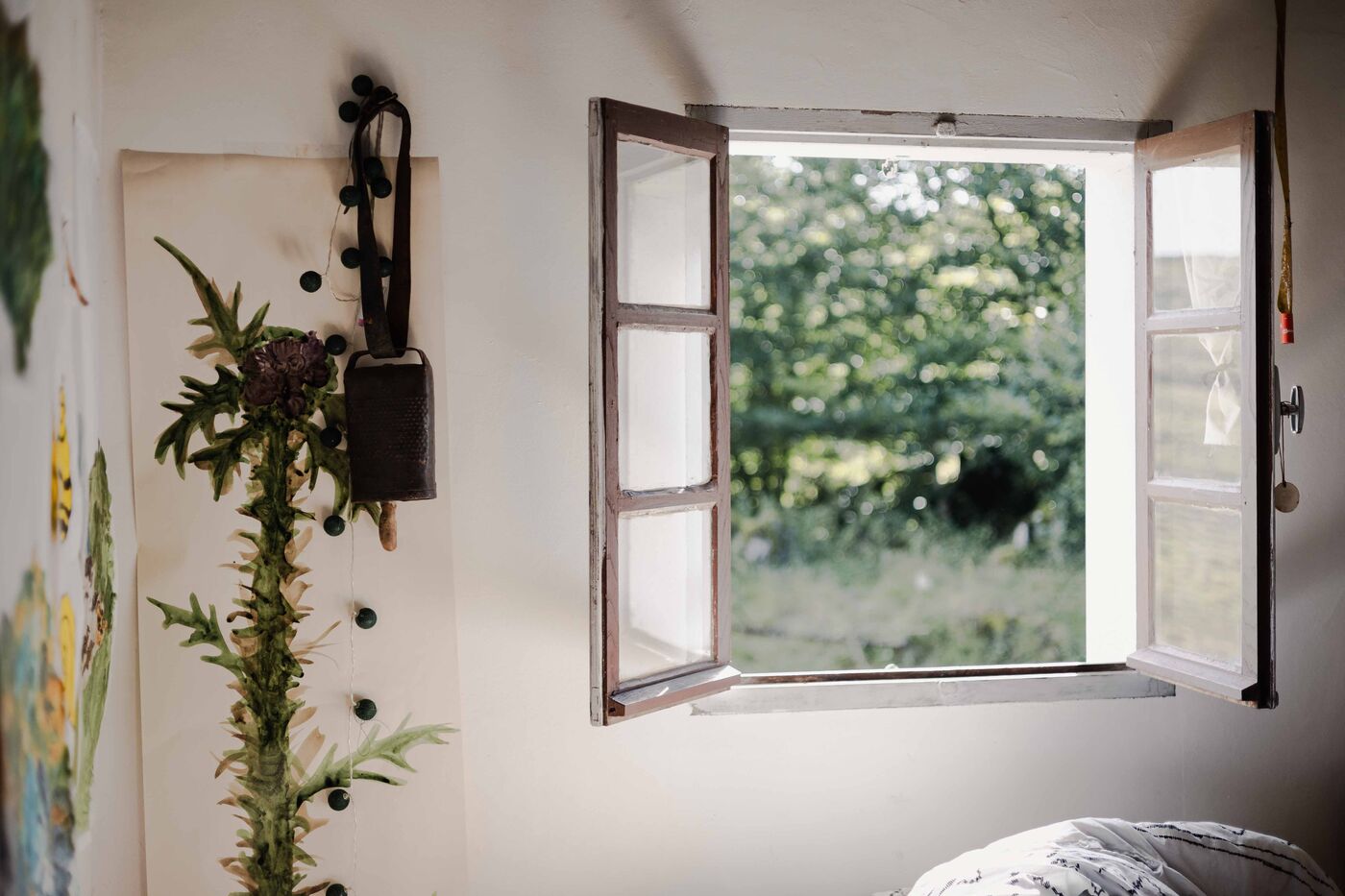 The proximity of the mountain, the location of the cabin at the edge of a small beech wood, the isolation, the silence, the occasional idleness... have nourished her thoughts and her creations.