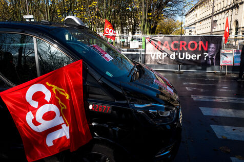 MACRON VRP D'UBER UBER FILES RASSEMBLEMENT DE TAXIS CGT AUX ABORDS DE L'ASSEMBLEE NATIONALE
