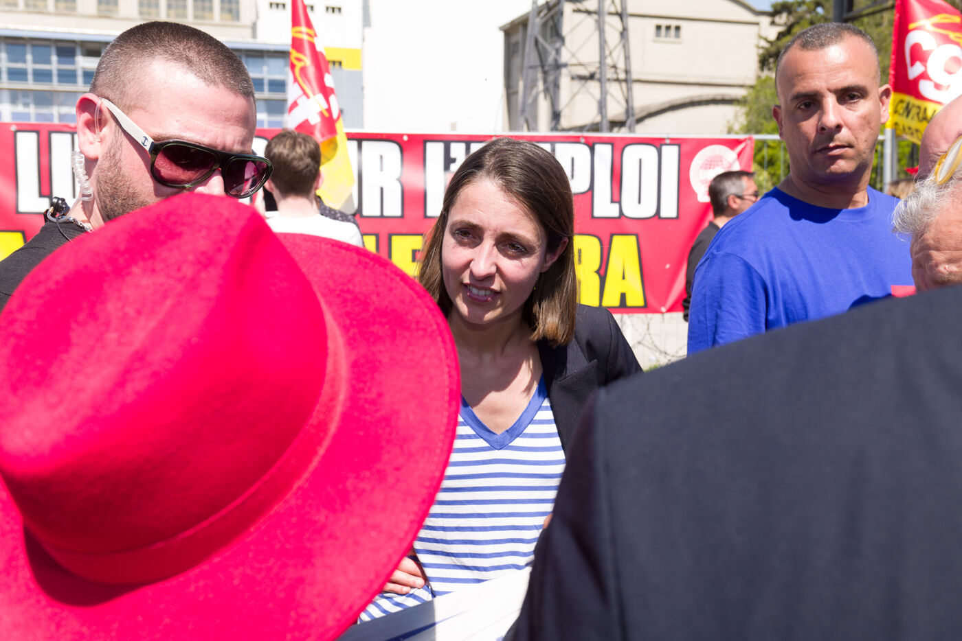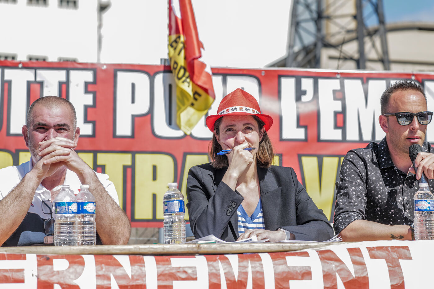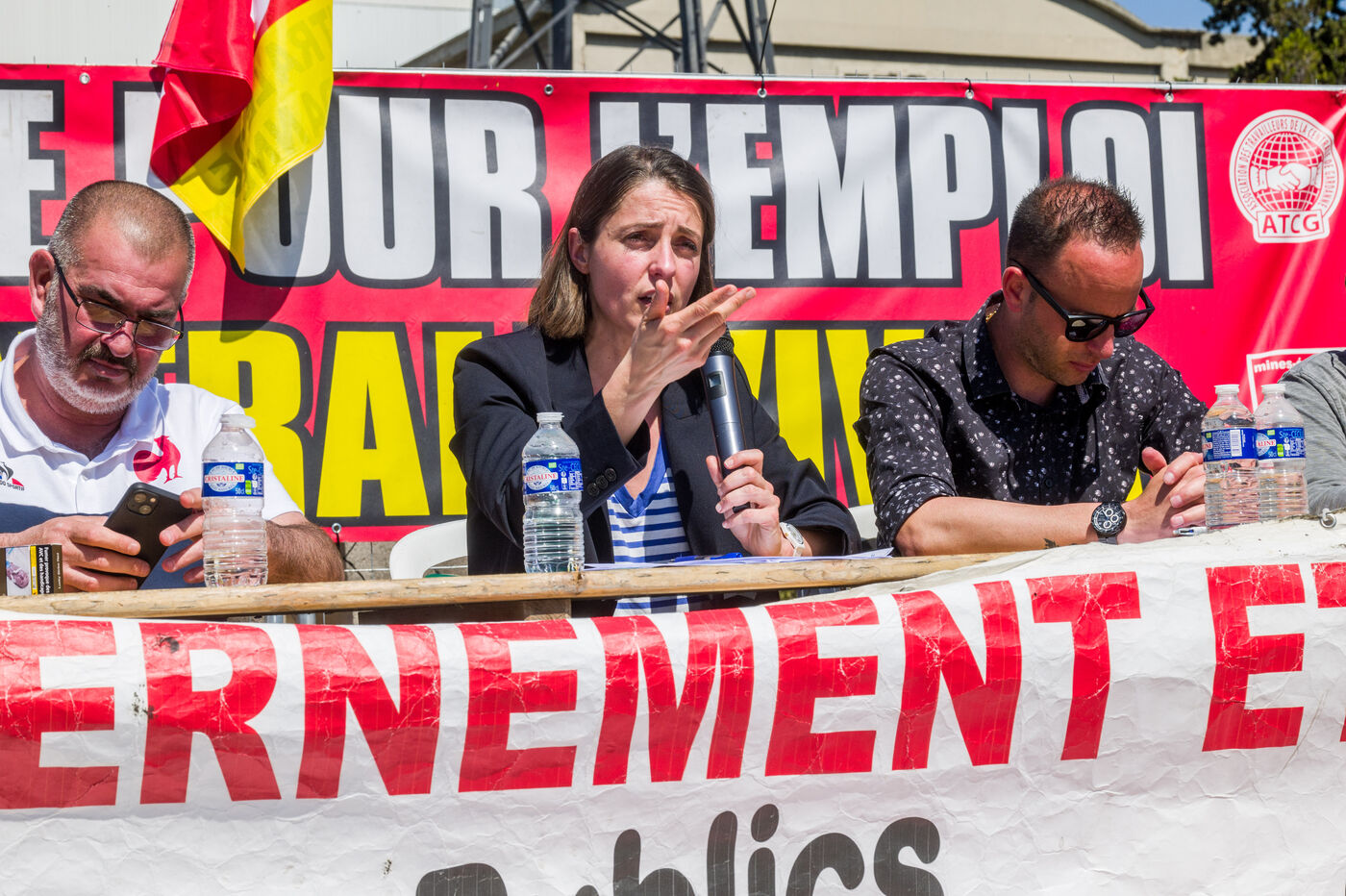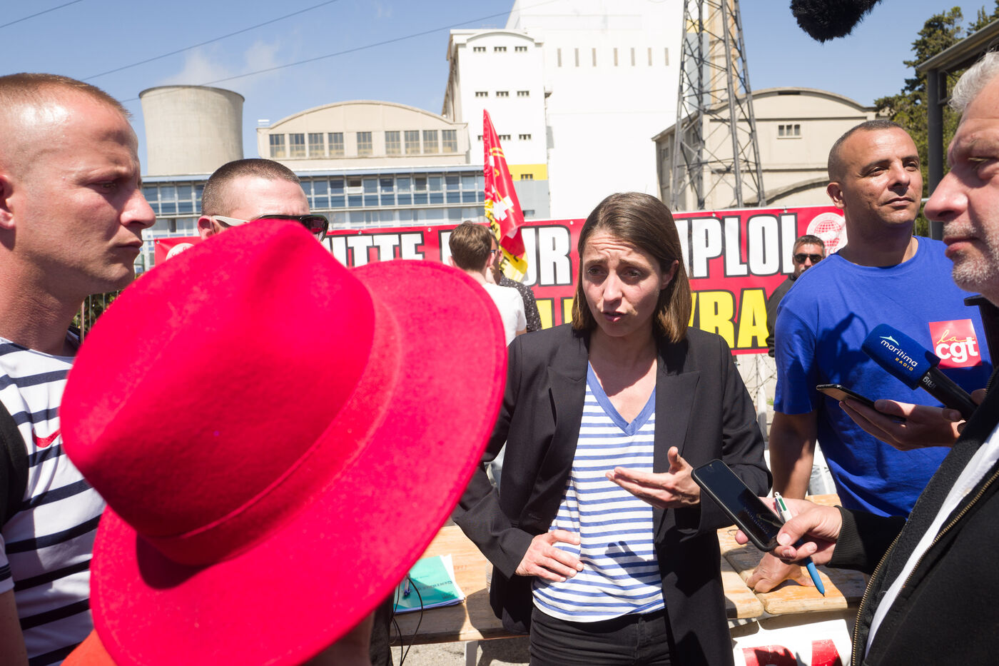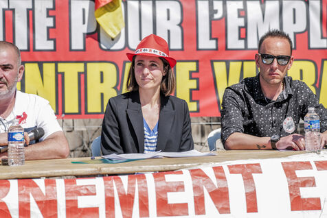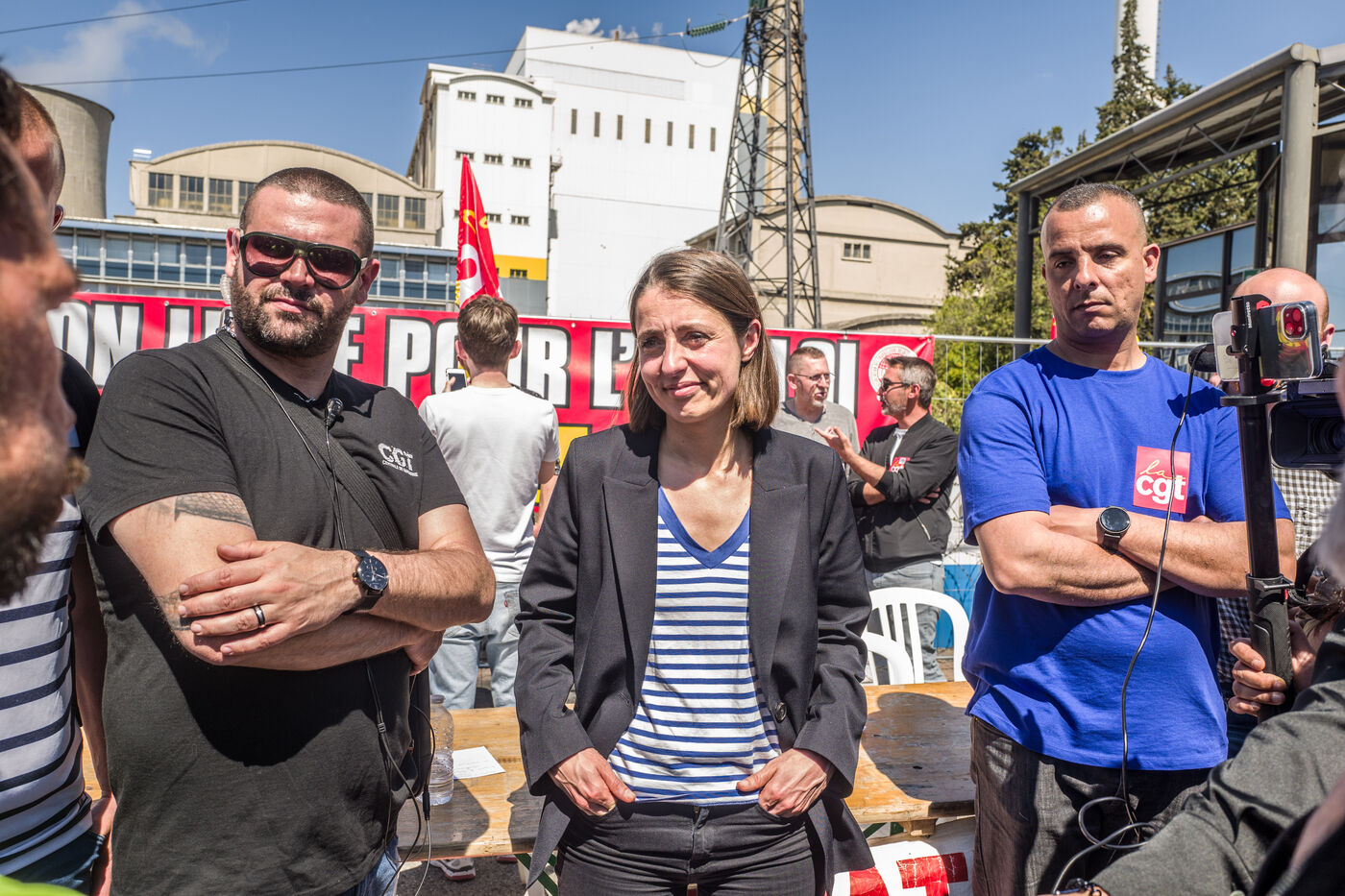 CONFERENCE DE PRESSE MEETING DE SOPHIE BINET SECRETAIRE GENERALE DE LA CGT A LA CENTRALE THERMIQUE DE PROVENCE (13)