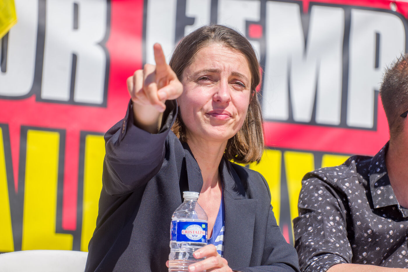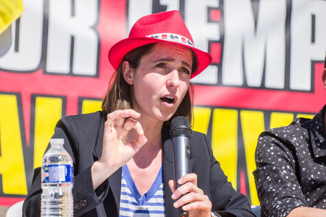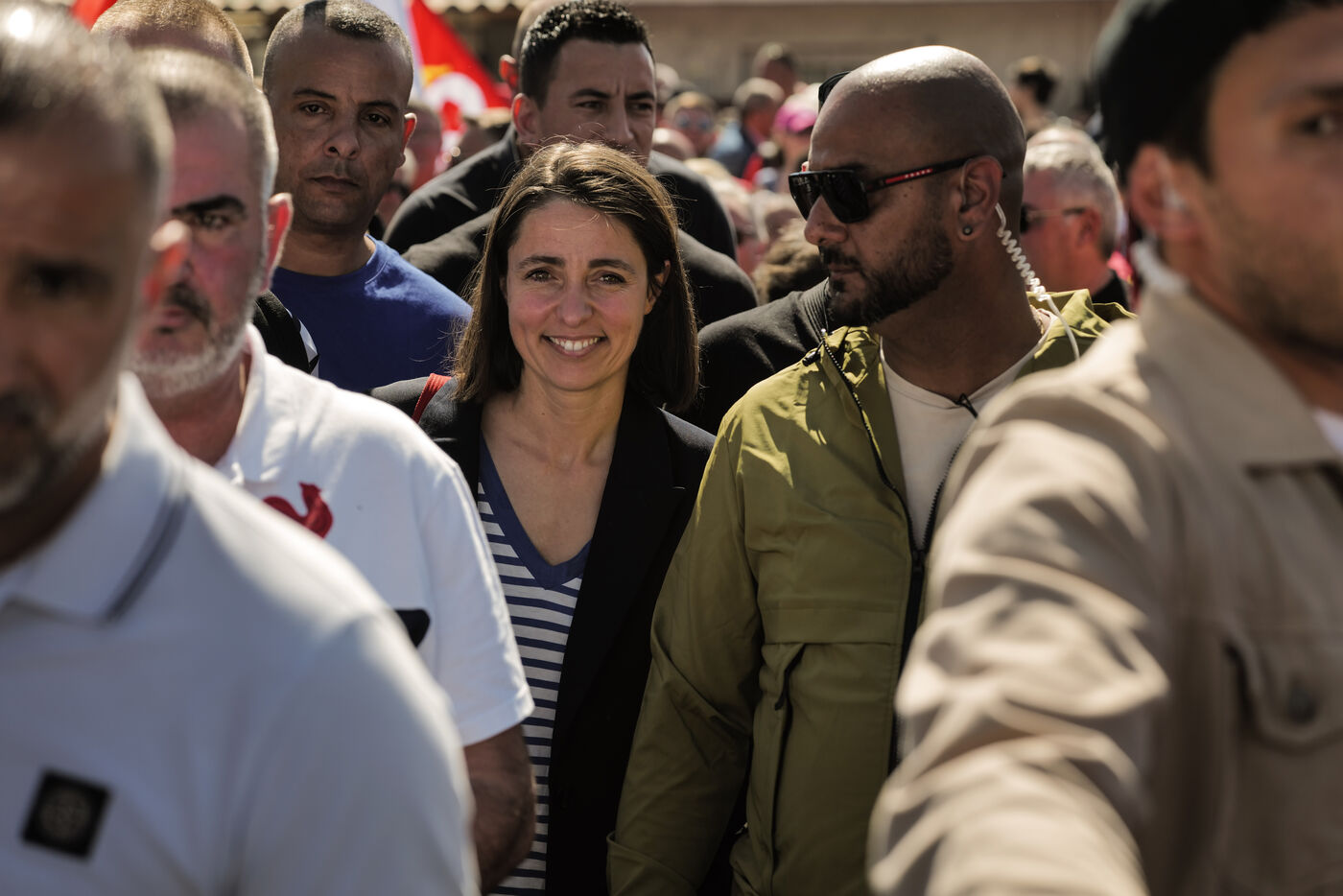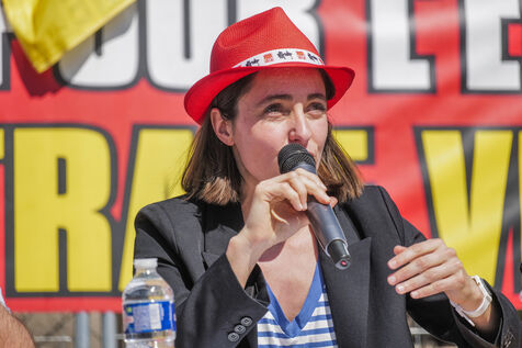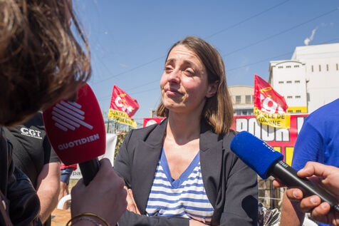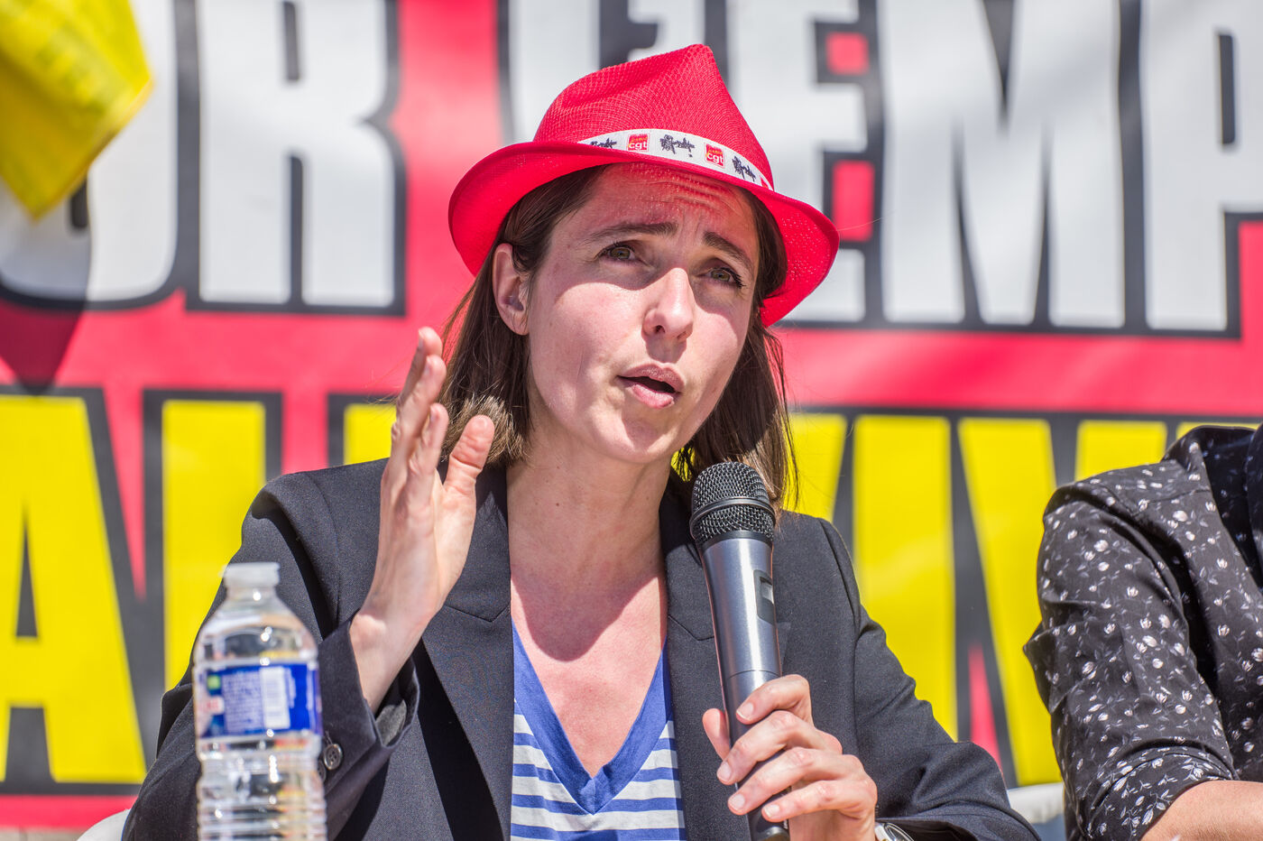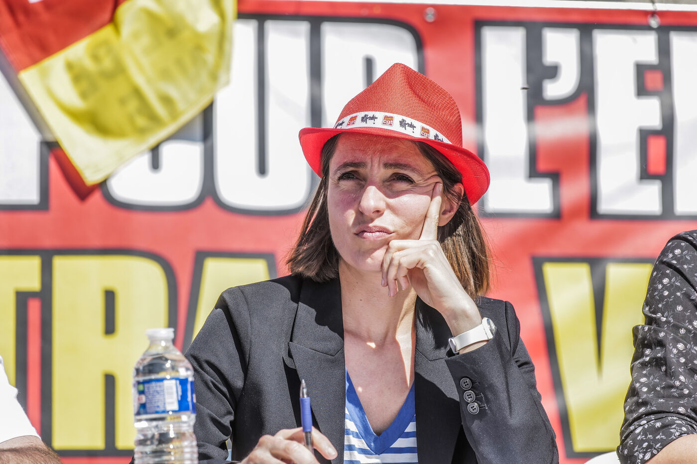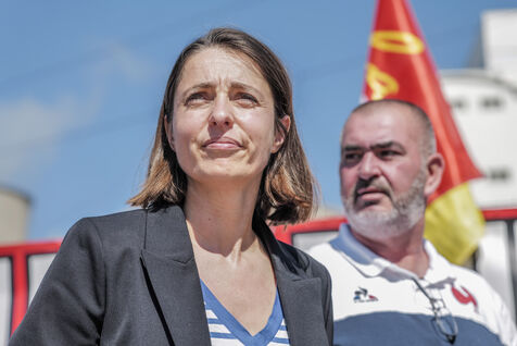 CONFERENCE DE PRESSE MEETING DE SOPHIE BINET SECRETAIRE GENERALE DE LA CGT A LA CENTRALE THERMIQUE DE PROVENCE (13)
