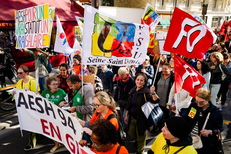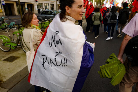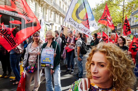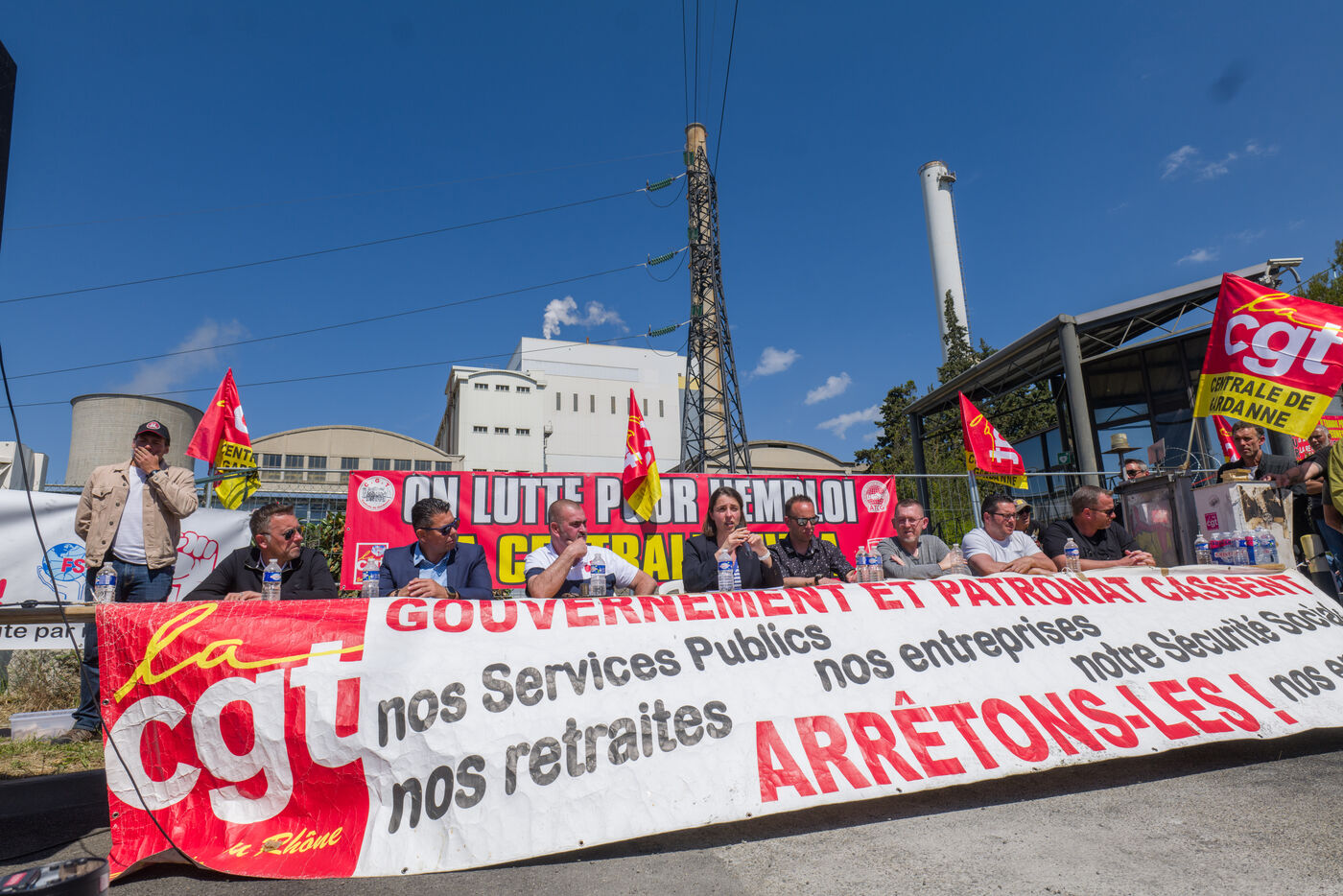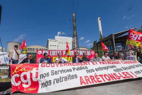 FRANCE - CONFERENCE DE PRESSE MEETING DE SOPHIE BINET SECRETAIRE GENERALE DE LA CGT A LA CENTRALE THERMIQUE DE PROVENCE (13)
