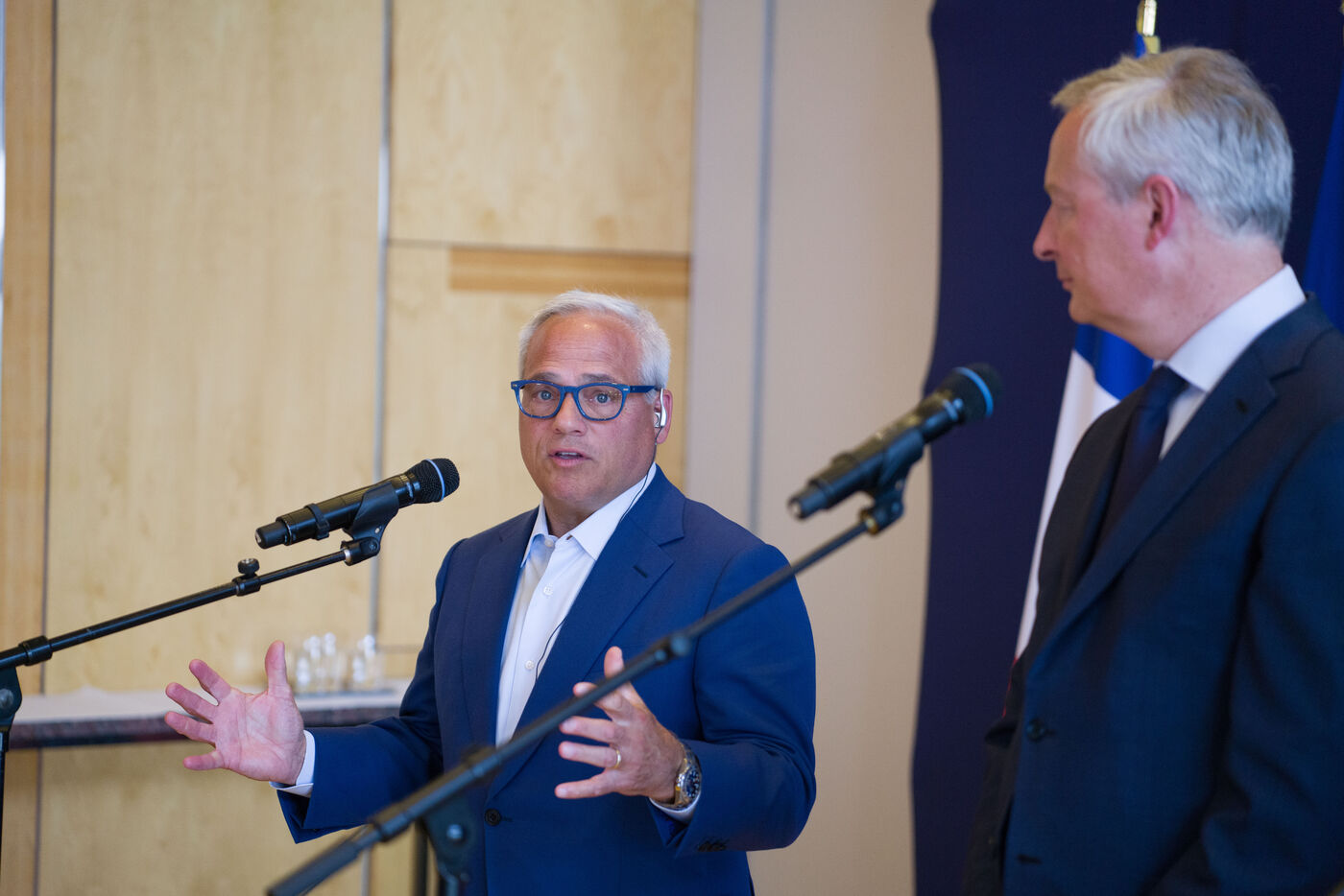 Bruno Le Maire announces the start of production at the GlobalFoundries and STMicroelectronics Crolles semiconductor mega-factory, and signs the contract for the French government's support for the project.