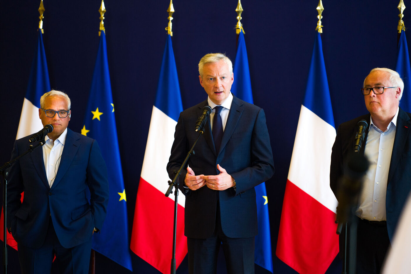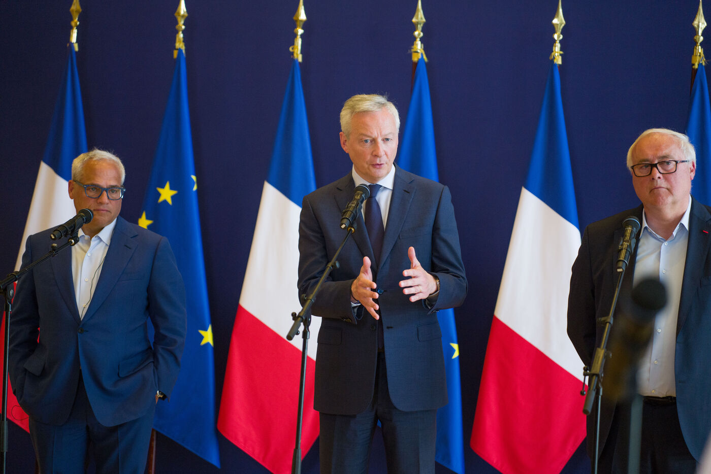 FRANCE - Bruno Le Maire announces the start of production at the GlobalFoundries and STMicroelectronics Crolles semiconductor mega-factory, and signs the contract for the French government's support for the project.