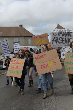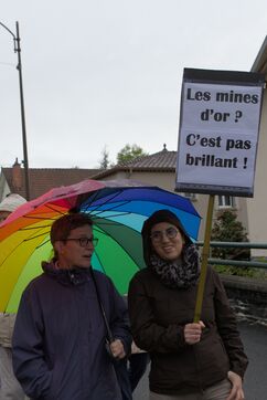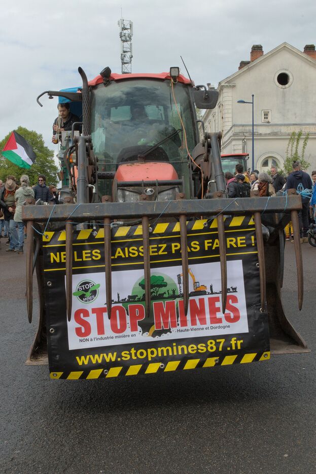Plus de 350 personnes manifestaient pacifiquement, de façon apolitique, contre les mines d'or à Saint Yrieix la Perche, Nouvelle Aquitaine, France, le 19 avril 2025. Les opposants dénoncent une pollution de l'air et de l'eau inévitable si les mines rouvrent. Quatre permis exclusifs de recherches ont été délivrés en quelques années dans des zones à cheval sur la Haute-Vienne et la Dordogne, où les dernières mines aurifères avaient fermé il y a vingt ans. Cela représente une zone de 100 km2. D'autres demandes ont été déposées. L'opposition est forte et menée par l'association Stop Mines 87-24. Elle regroupe des personnes de tout bord politiques, agriculteurs tant de la Confédération paysanne que de la FNSEA, élus, professionnels du tourisme, etc.
