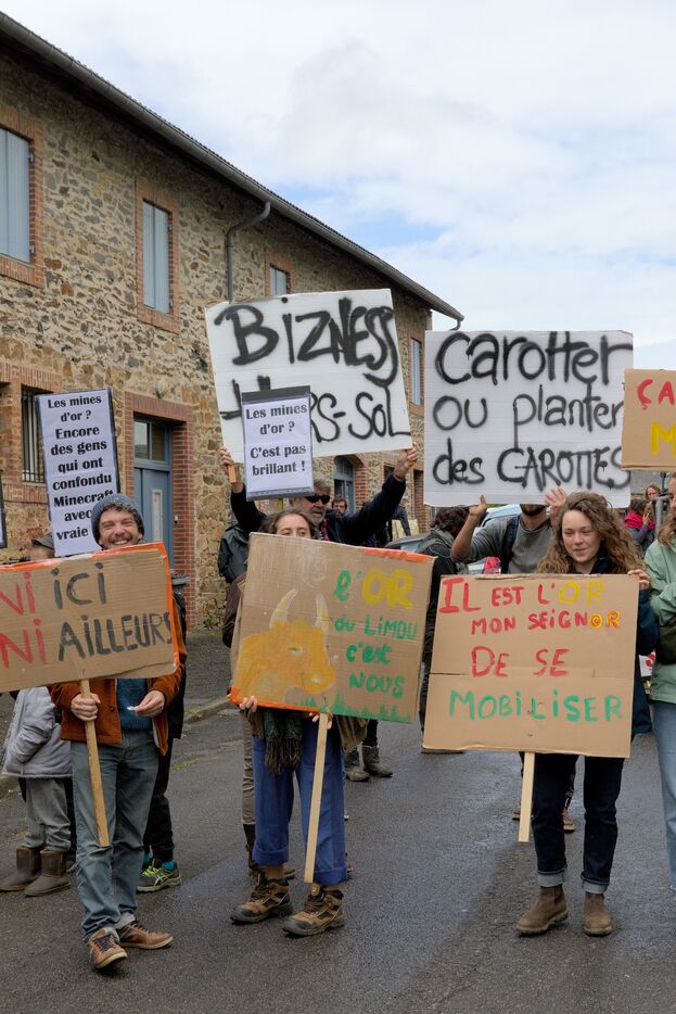 More than 350 people demonstrated peacefully and apolitically against the gold mines in Saint Yrieix la Perche, Nouvelle Aquitaine, France, on 19 April 2025. Opponents denounced the inevitable air and water pollution that would result if the mines reopened. Four exclusive exploration permits have been issued in the last few years in areas straddling the Haute-Vienne and Dordogne, where the last gold mines closed twenty years ago. This represents an area of 100 km2. Other applications have been submitted. Opposition is strong, led by the Stop Mines 87-24 association. It brings together people from all sides of the political spectrum, farmers from both the Confédération paysanne and the FNSEA, elected representatives, tourism professionals, and others.