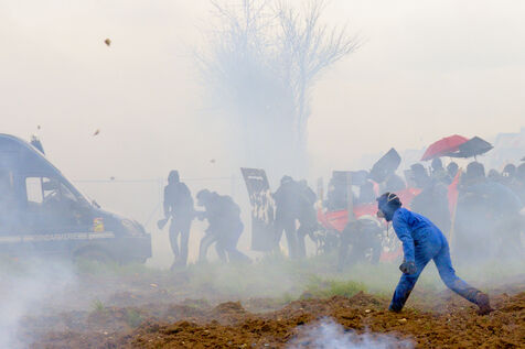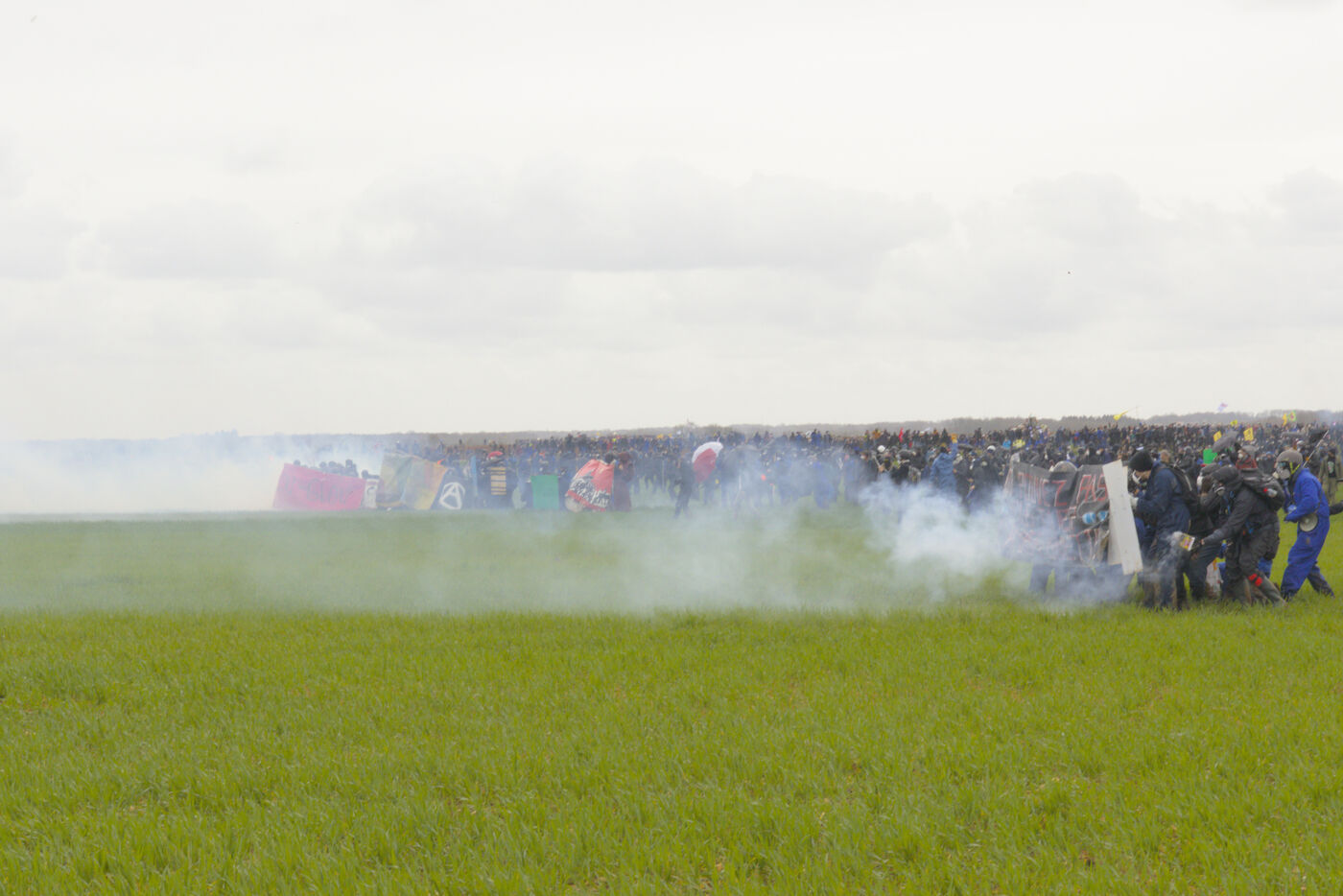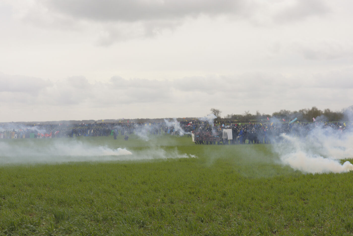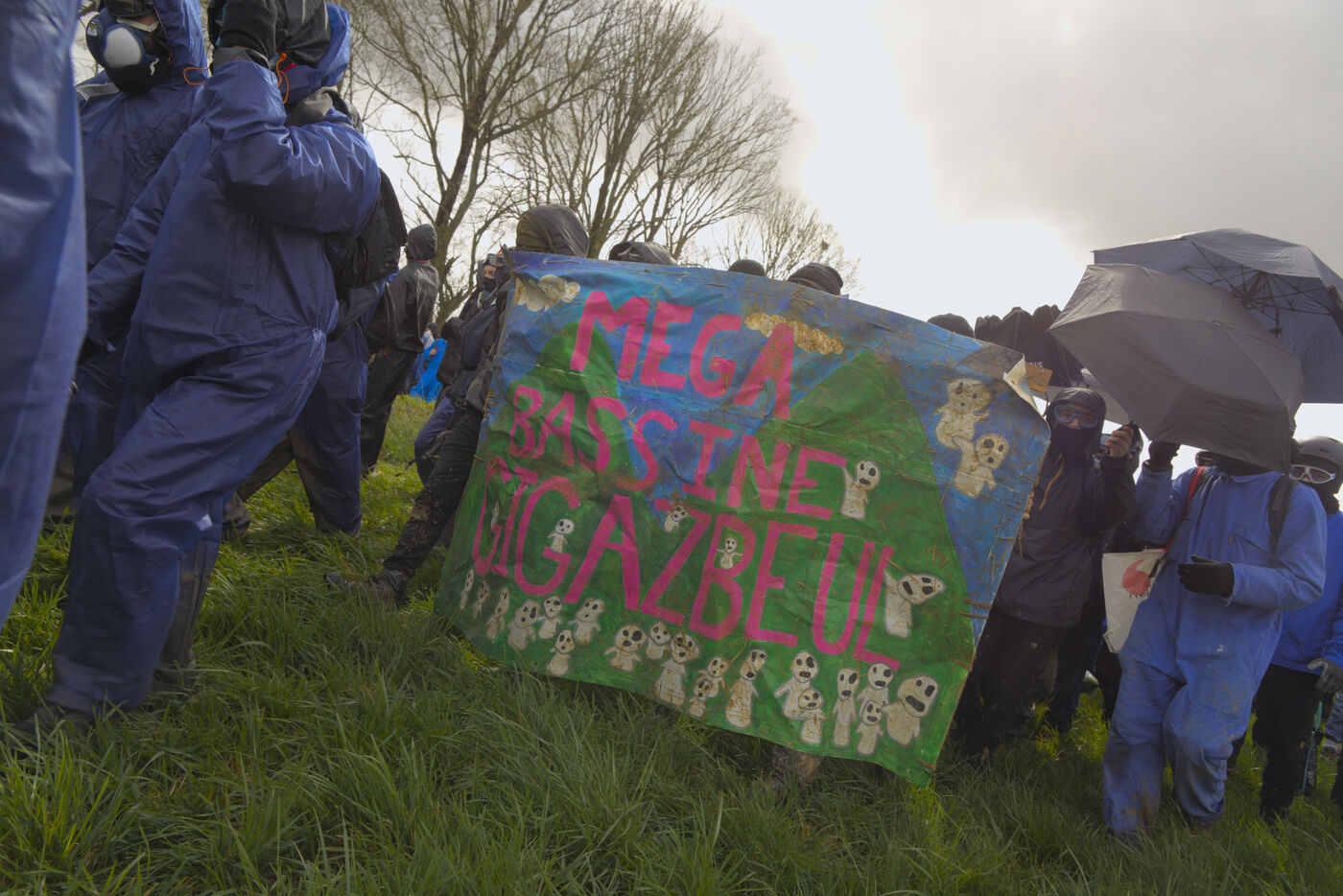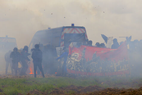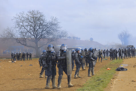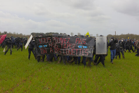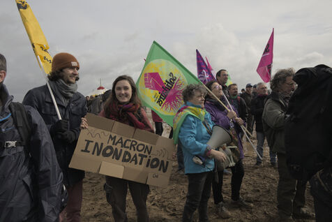 Le 25 mars 2023, plus de 25 000 personnes se sont rassemblées à Sainte-Soline, dans la Vienne en Nouvelle Aquitaine pour dénoncer les méga-bassines. Cette manifestation a été réprimée par les forces de l'ordre de façon particulièrement violente : plus de 3000 gendarmes mobilisés, « 5 015 grenades lacrymogènes, 89 grenades de désencerclement GENL, 40 dispositifs déflagrants ASSD, et 81 tirs de LBD », selon les données officielles. Du jamais vu. Tout cela pour un cratère, étant donné que la bassine n'avait pas encore été construire.
