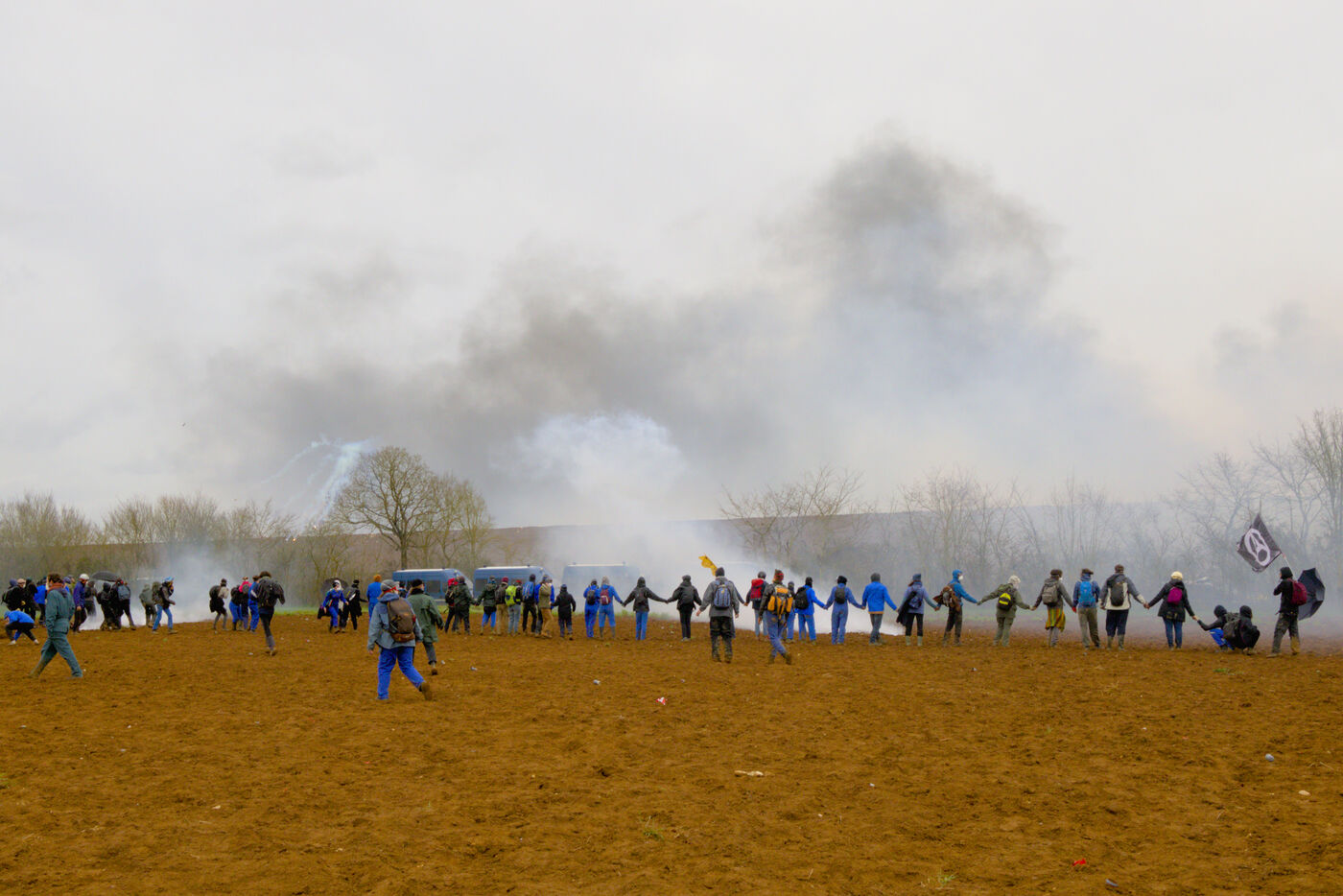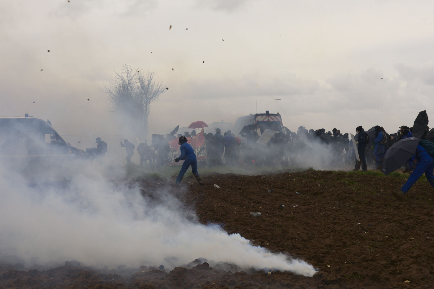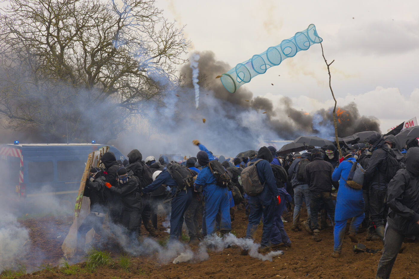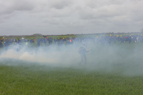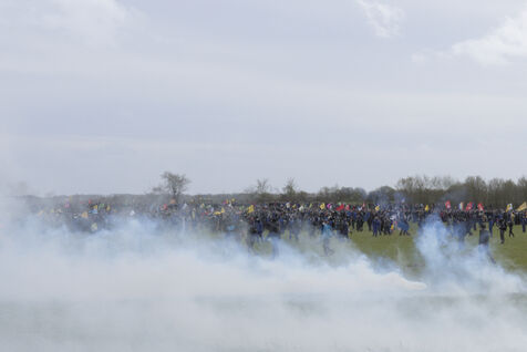 On 25 March 2023, more than 25,000 people gathered in Sainte-Soline, in the Vienne department of Nouvelle Aquitaine, to protest against mega-basins. This demonstration was suppressed by the police in a particularly violent manner: more than 3,000 gendarmes were mobilised, and ‘5,015 tear gas grenades, 89 GENL stun grenades, 40 ASSD explosive devices, and 81 LBD shots’ were used, according to official data. This was unprecedented. All this for a crater, given that the reservoir had not yet been built.