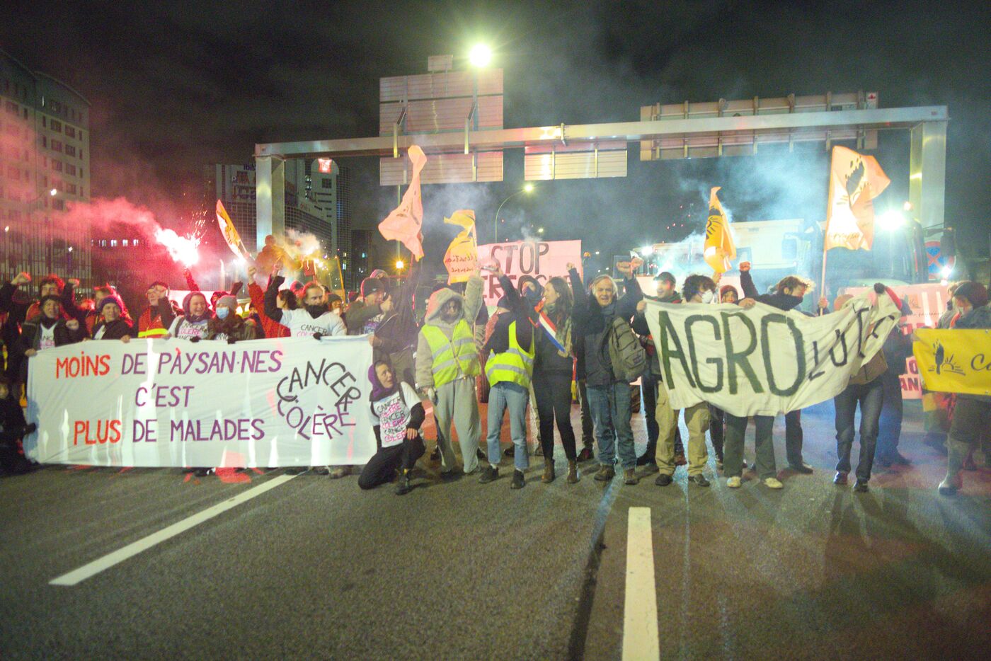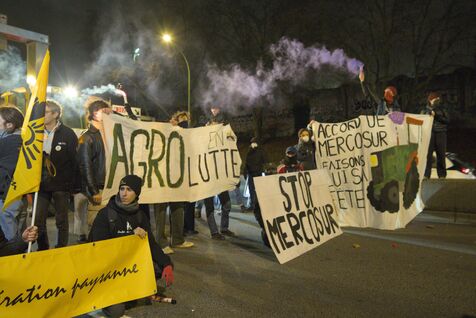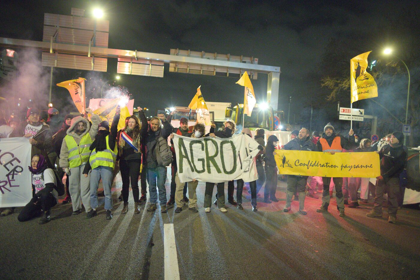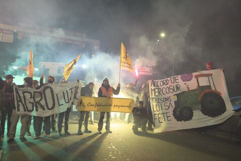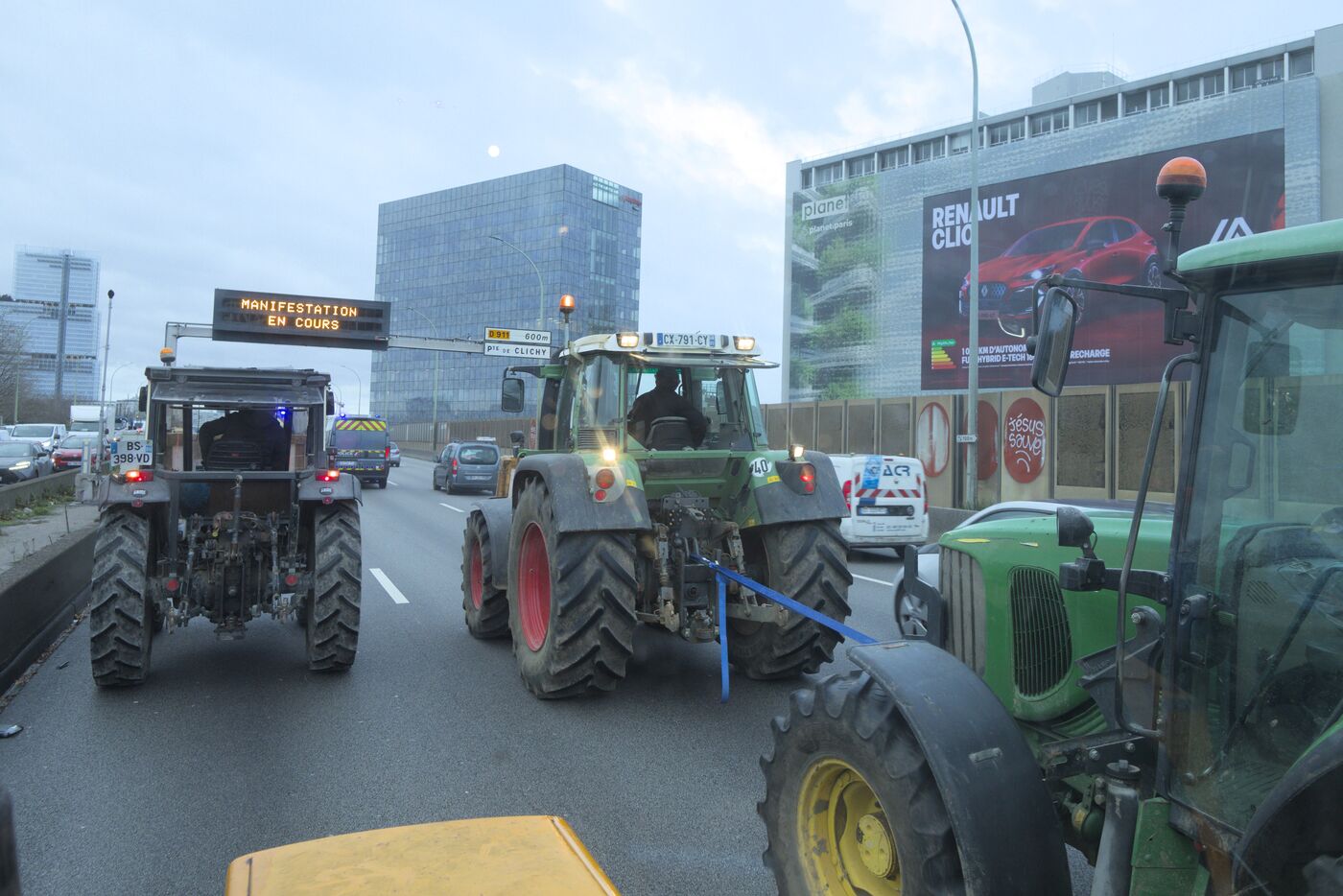 Le 9 janvier 2026, une centaine de militants de la Confédération paysanne, des Soulèvements de la Terre, de Cancer Colère, d'Agro en Lutte, de la CGT Paris ont bloqué et occupé le périphérique parisien, Porte de Montreuil. Une opération escargot a ensuite démarré avec six tracteurs jusqu'à la porte Maillot où la police a décidé de bloquer le convoi. Cette action visait à dénoncer la politique scandaleuse de la dermatose nodulaire contagieuse (DNC) par le gouvernement et l'accord commercial entre l'UE et le Mercosur. Lorsqu'un cas de DNC est détecté dans un troupeau, le protocole oblige l'abattage total du troupeau, ce qui pour le syndicat est abusif et inutile. Et il estime que l'accord UE Mercosur accentuera la paupérisation de la paysannerie et accélèrera son déclin. A noter que ce jour là, deux des porte-paroles de la Confédération paysanne, Thomas Gibert et Stéphane Gallais, ont été mis en garde à vue. Ils attendaient avec une cinquantaine de personnes, place de l'Etoile, à Paris, l'arrivée du convoi des tracteurs.