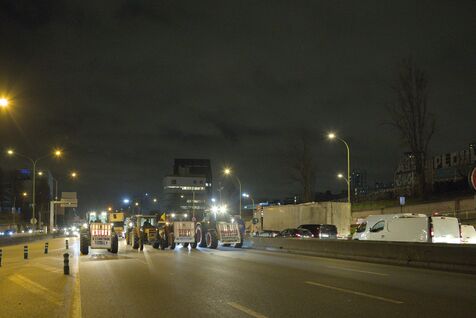The Confédération paysanne farmers' union blocks the Paris ring road to protest against the government's agricultural policy