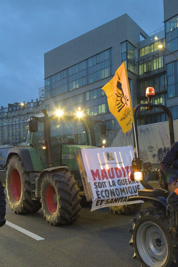 On January 9, 2026, around a hundred activists from the Confédération paysanne, Soulèvements de la Terre, Cancer Colère, Agro en Lutte, and CGT Paris blocked and occupied the Paris ring road at Porte de Montreuil. A slow-moving convoy of six tractors then set off for Porte Maillot, where the police decided to block the convoy. This action was once again aimed at denouncing the government's scandalous policy on Lumpy skin disease and the trade agreement between the EU and Mercosur. When a case of LSD is detected in a herd, the protocol requires the entire herd to be slaughtered, which the union considers excessive and unnecessary. It also estimates that the EU-Mercosur agreement will exacerbate the impoverishment of the peasantry and accelerate its decline. It should be noted that on that day, two spokespeople for the Confédération paysanne farmers' union, Thomas Gibert and Stéphane Gallais, were arrested by the police. They were waiting with about fifty other people at Place de l'Etoile in Paris for the arrival of the convoy of tractors.
