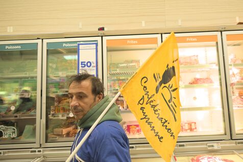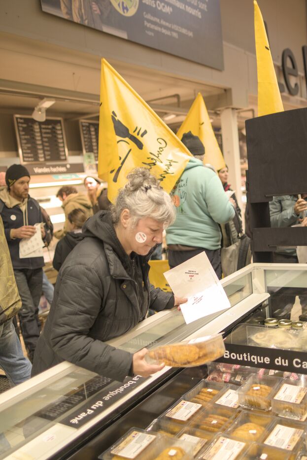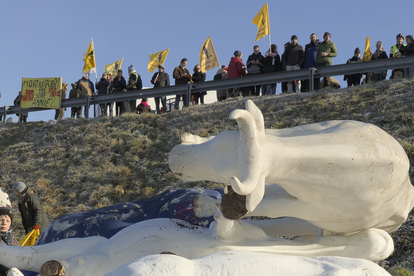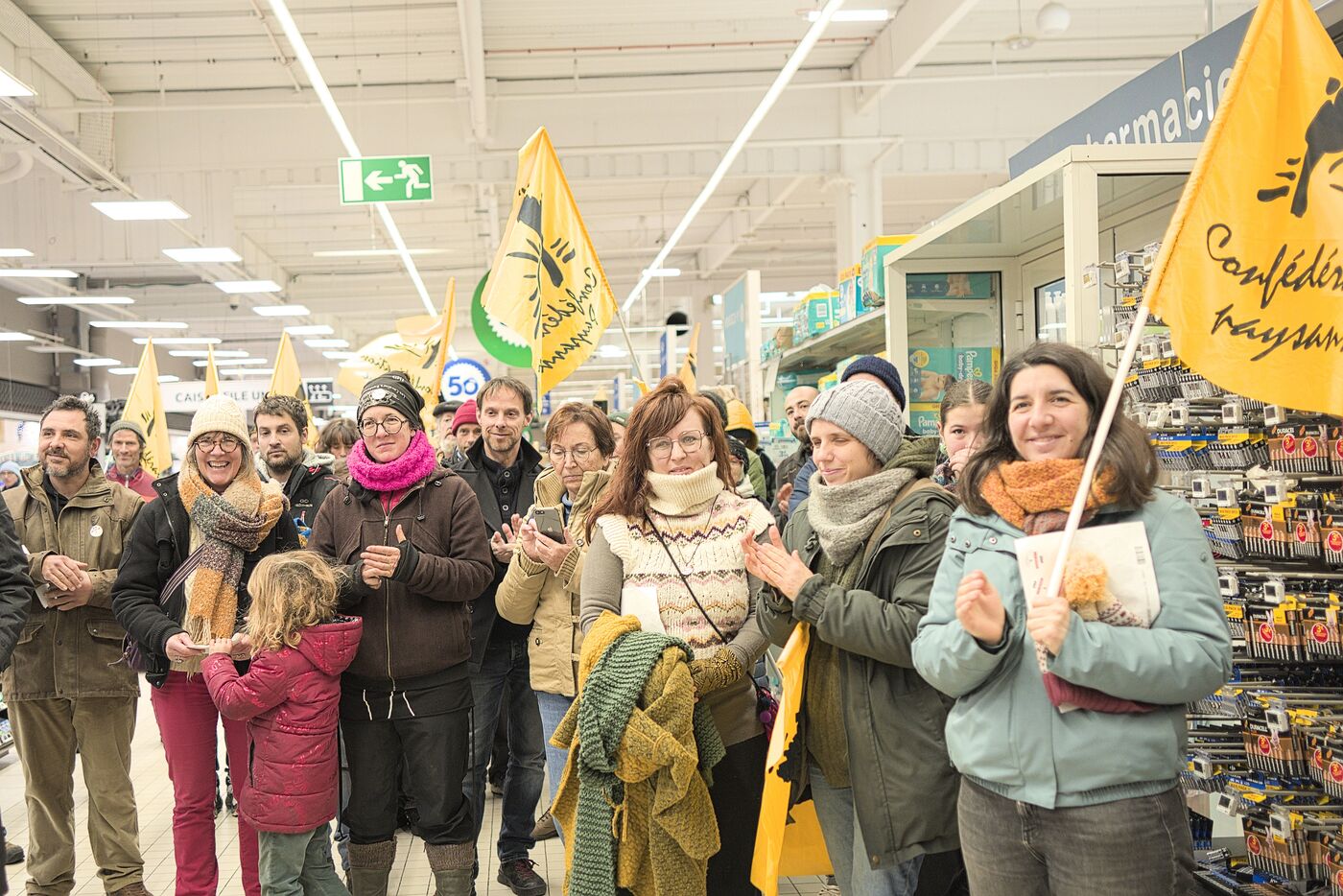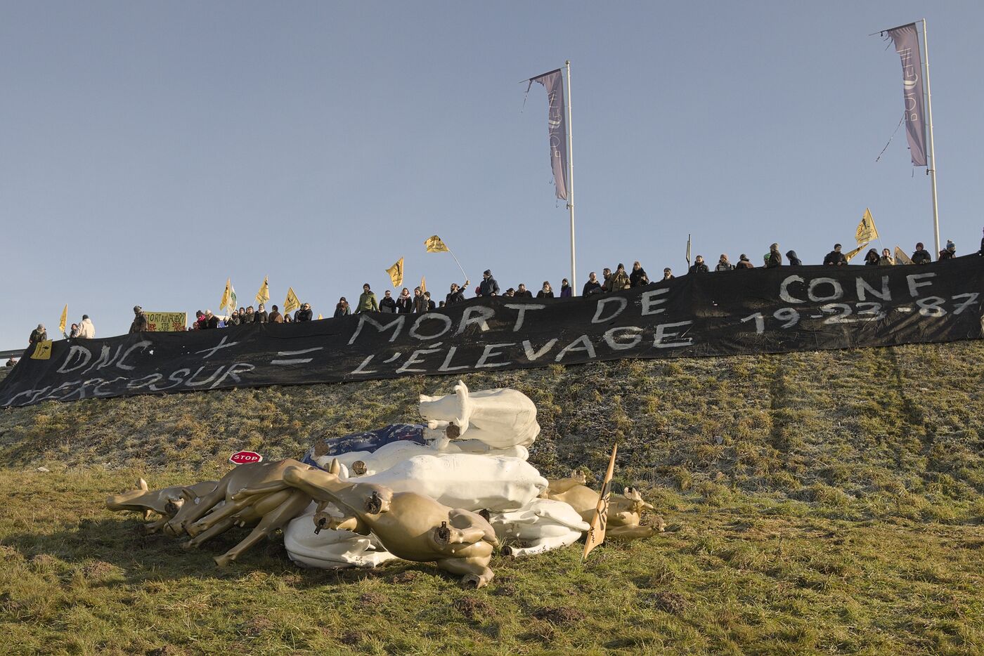 The action consisted of three acts: a snail operation on the A20 motorway, the removal of resin cows decorating the side of the motorway, and the labeling of products from Mercosur in a Carrefour store.