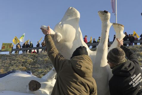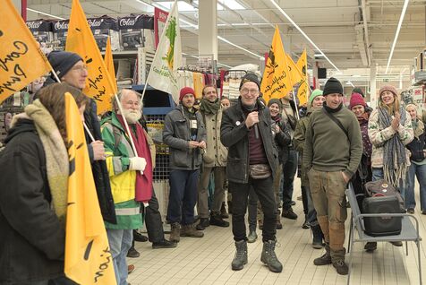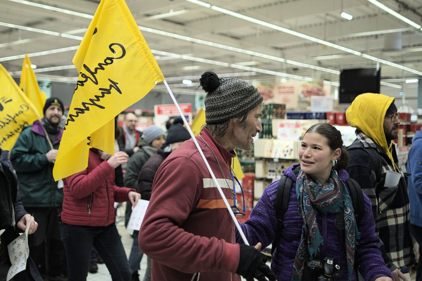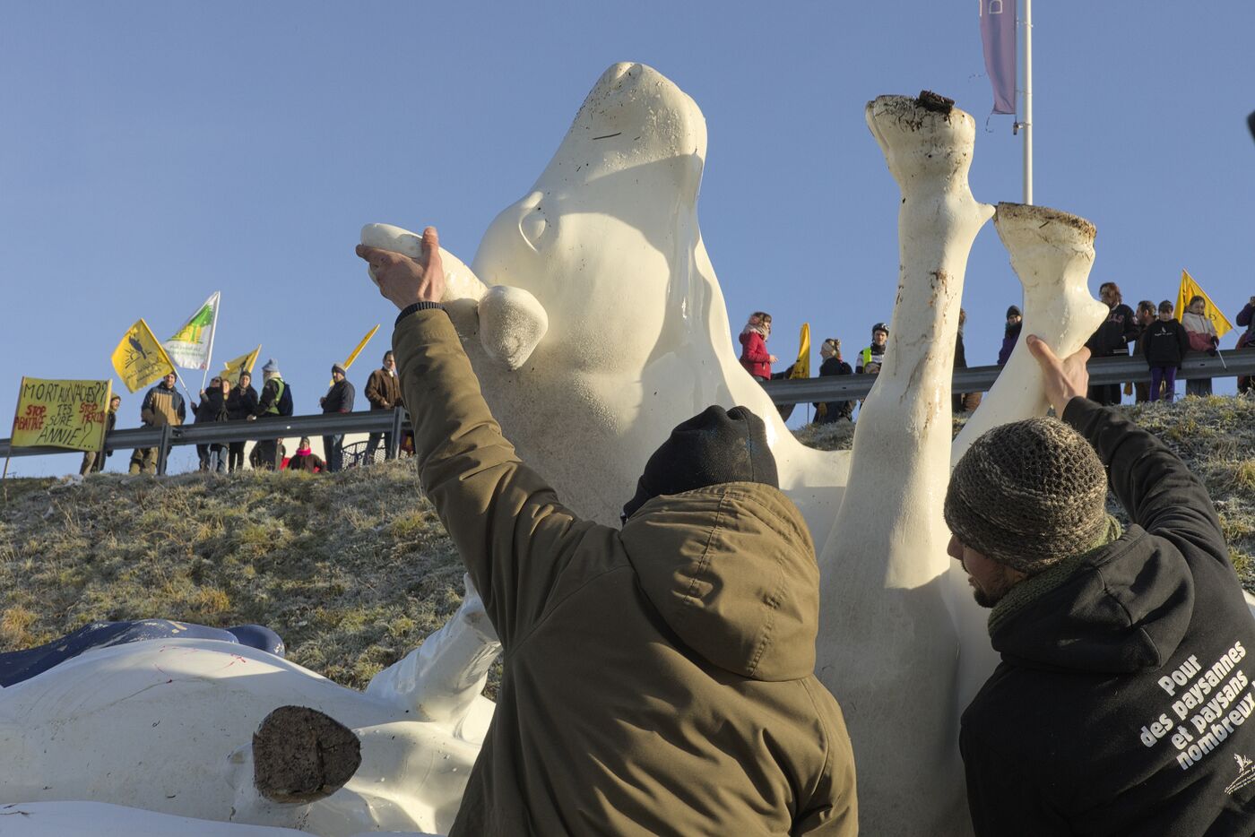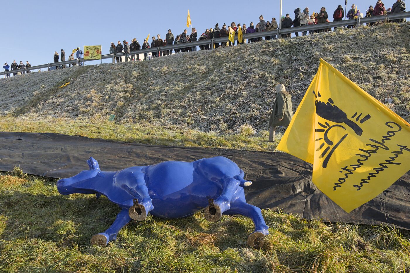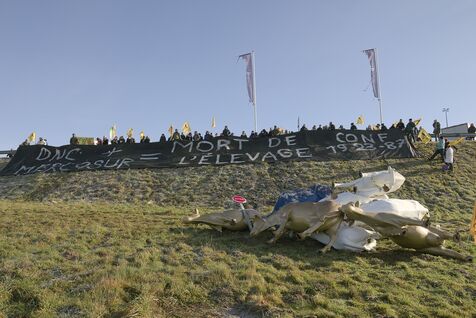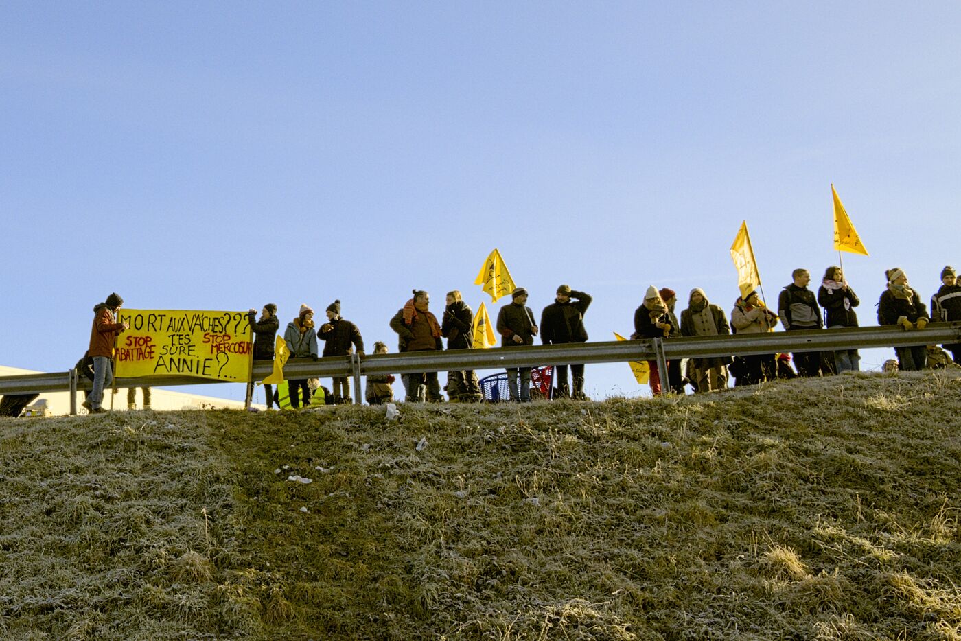 The action consisted of three acts: a snail operation on the A20 motorway, the removal of resin cows decorating the side of the motorway, and the labeling of products from Mercosur in a Carrefour store.