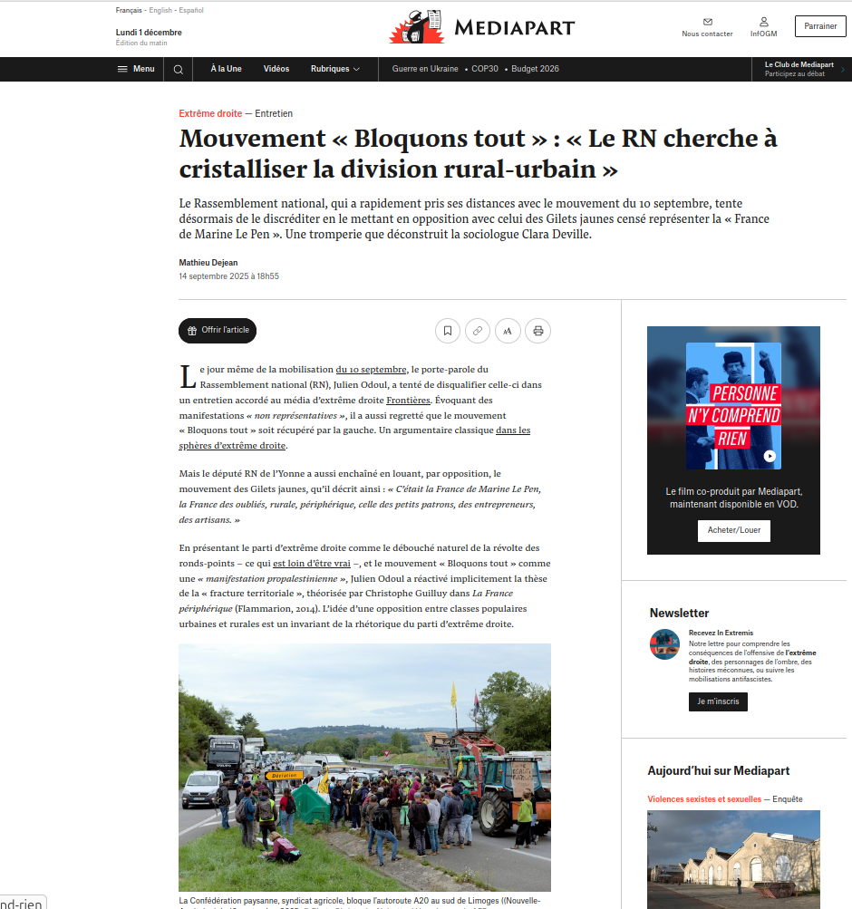 Christophe Noisette Publications Séries Environnement — Politique — Société — Sélection de séries Marianne, 25 novembre 2025 Libération, 30 novembre 2025 L'Humanité, 25 novembre 2025 Alternatives économiques, 17 novembre 2025 Le Figaro, 21 octobre 2025 L'Humanité, 17 septembre 2025 Mediapart, 14 septembre 2025 Reporterre, 27 juin 2025 Mediapart, 22 mai 2025 France Télévision, le 4 avril 2025 La relève et la peste, 29 octobre 2024