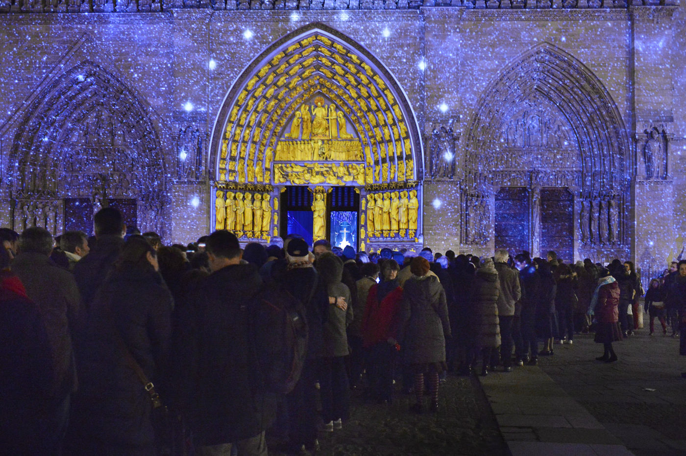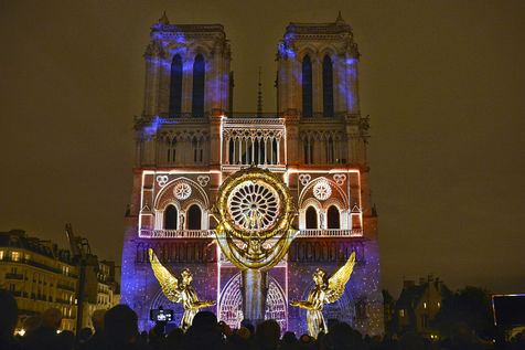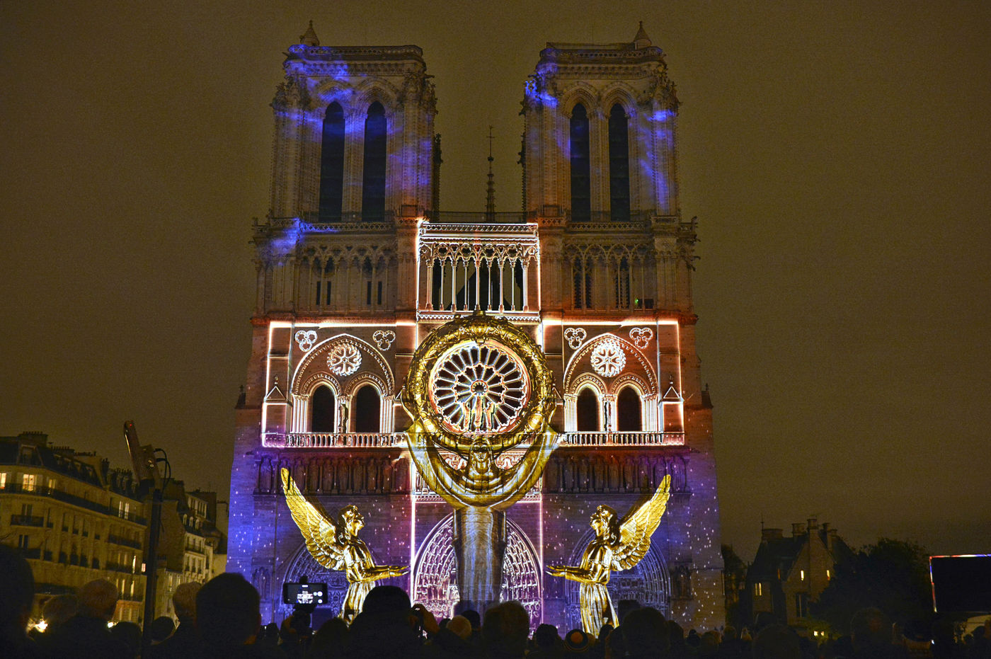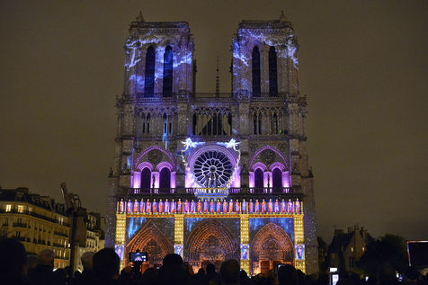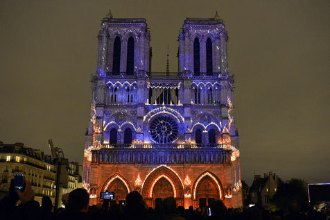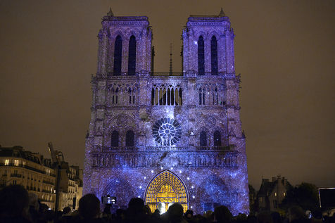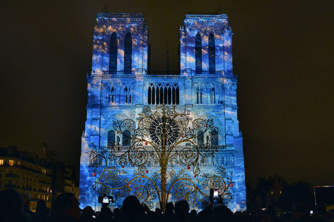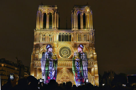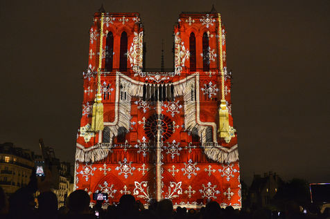 La façade de Notre-Dame de Paris s'habille pour un spectacle de son et lumière.