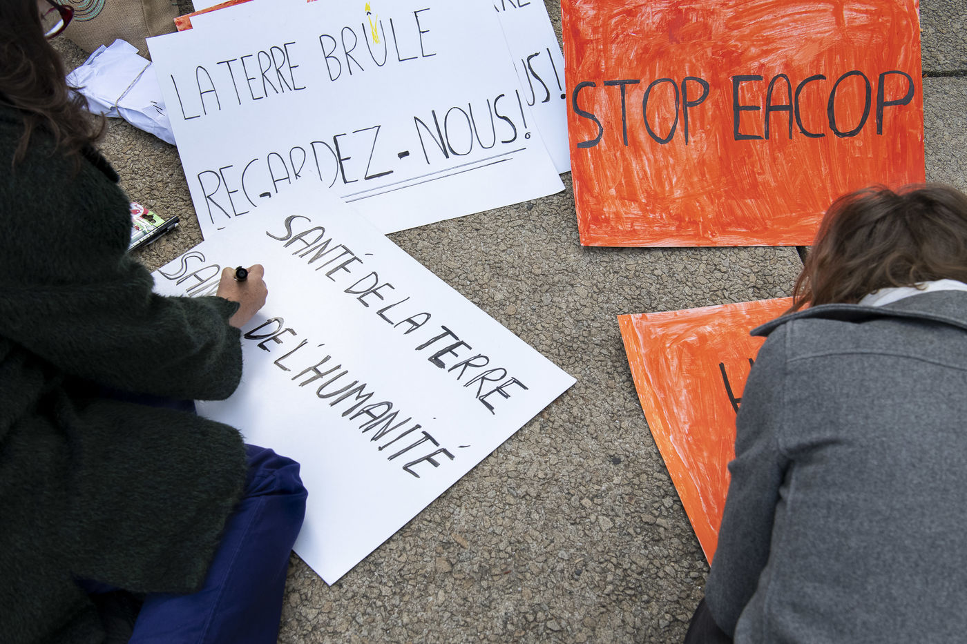 Des personnes croyantes et engagees pour la justice climatique appellent TotalEnergies a stopper immediatement les projets d extraction petroliere "Tilenga", en ouganda et d oleoduc chauffe geant (EACOP) reliant la cote tanzanienne. Ils jeunent pour denoncer ces projets contraires aux objectifs de l Accord de Paris sur le climat.