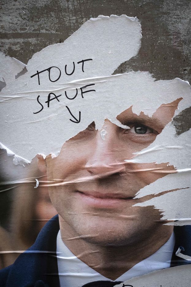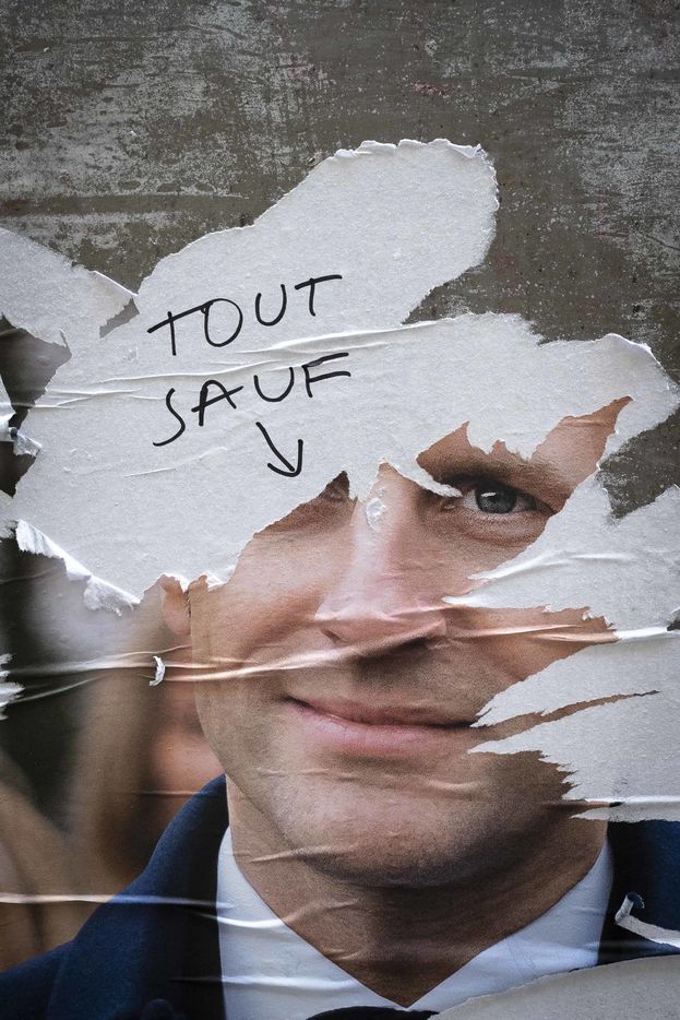 Presidential campaign 2022 : Posters of presidential candidate Emmanuel Macron.