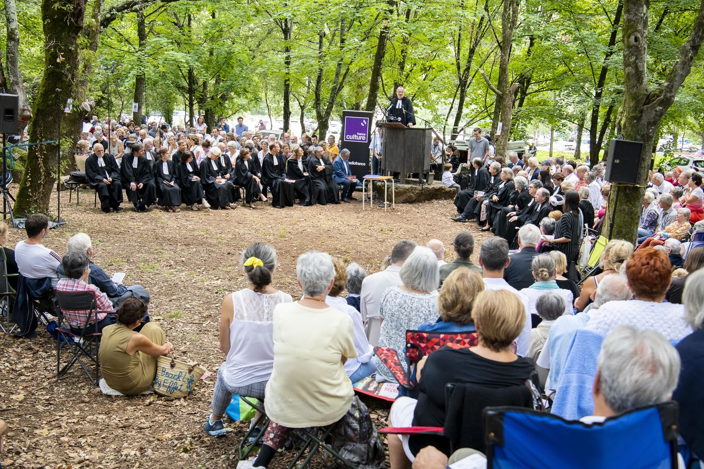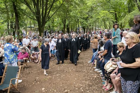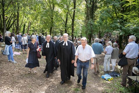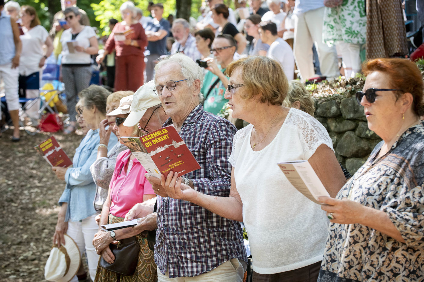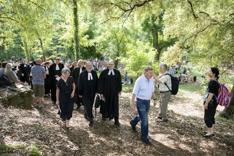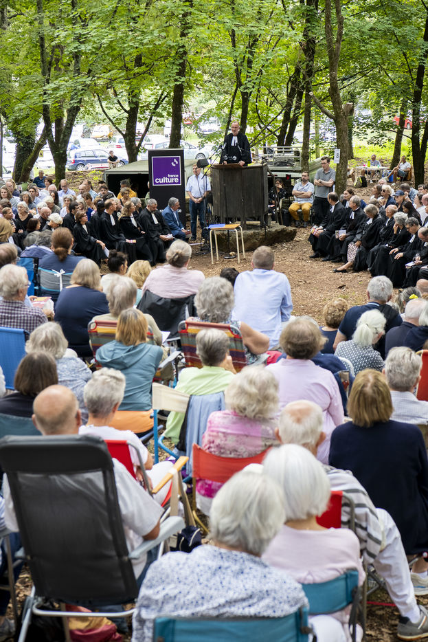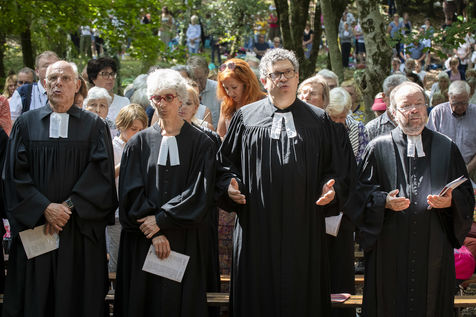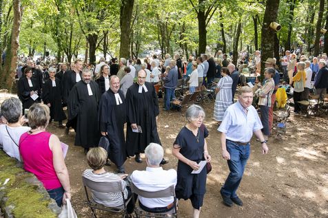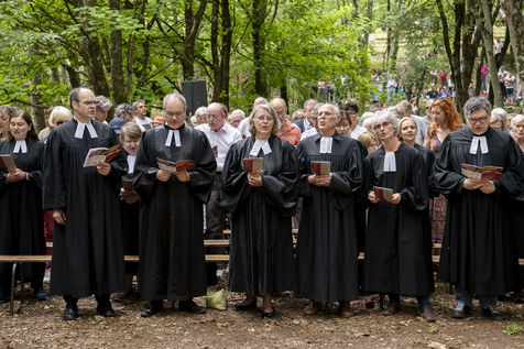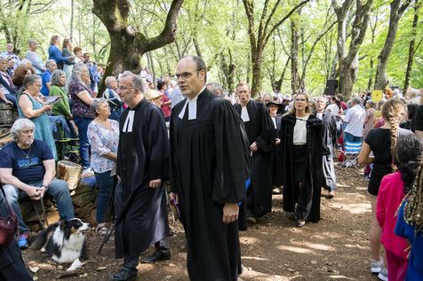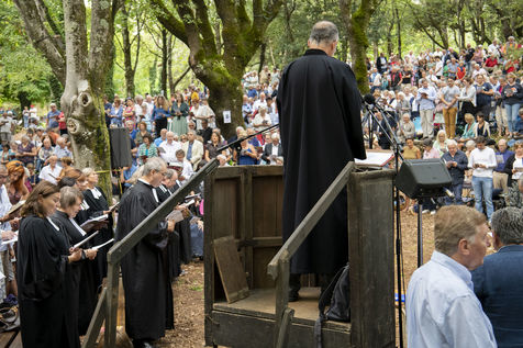 Plusieurs milliers de protestants se sont rassemblés pour commémorer le massacre de la Saint Barthélemy, lors de l'assemblée du désert au Mas Soubeyran, en Cévennes.