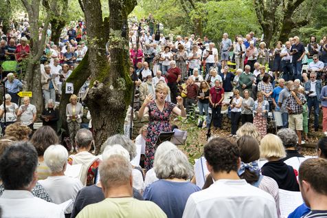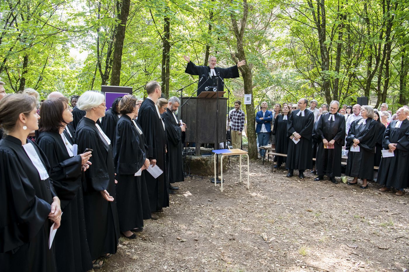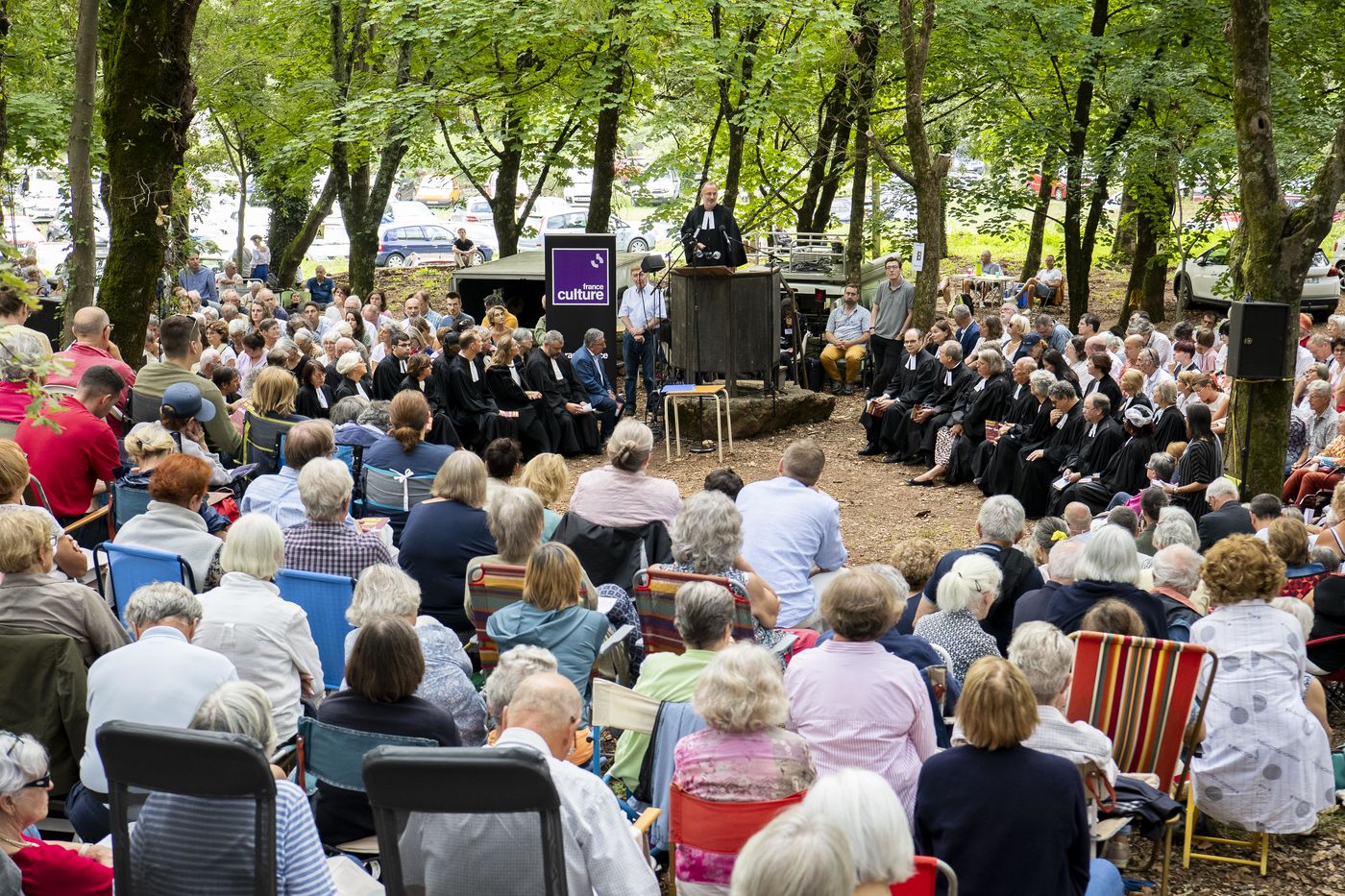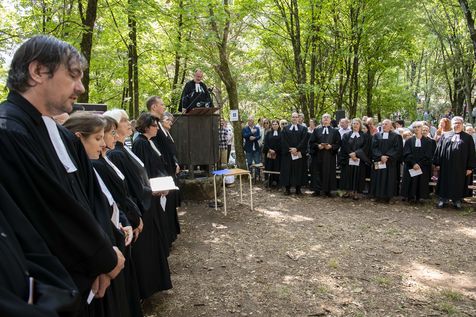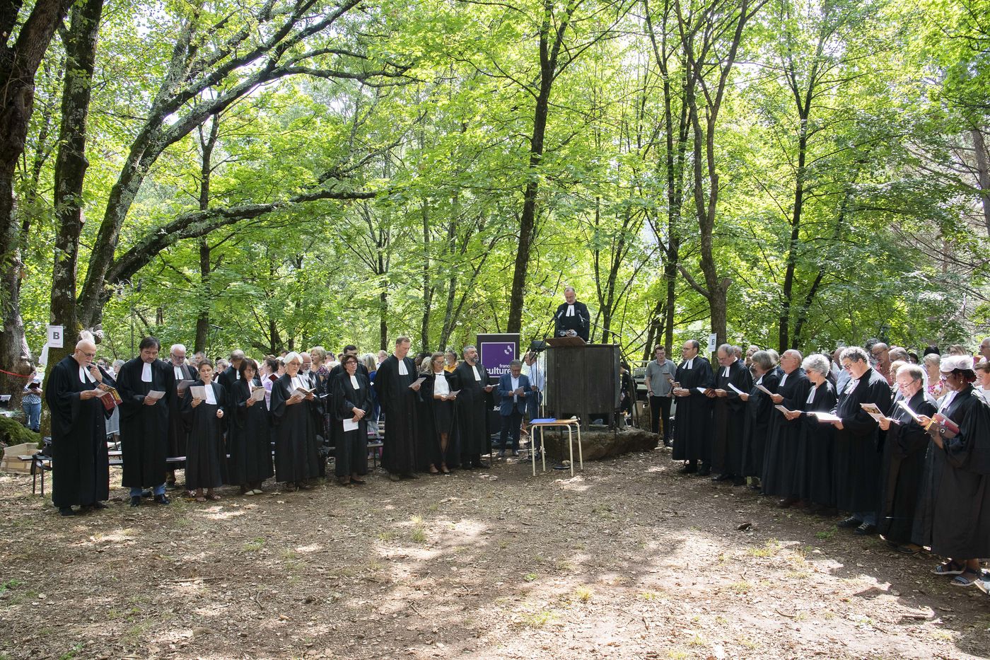 Plusieurs milliers de protestants se sont rassemblés pour commémorer le massacre de la Saint Barthélemy, lors de l'assemblée du désert au Mas Soubeyran, en Cévennes.