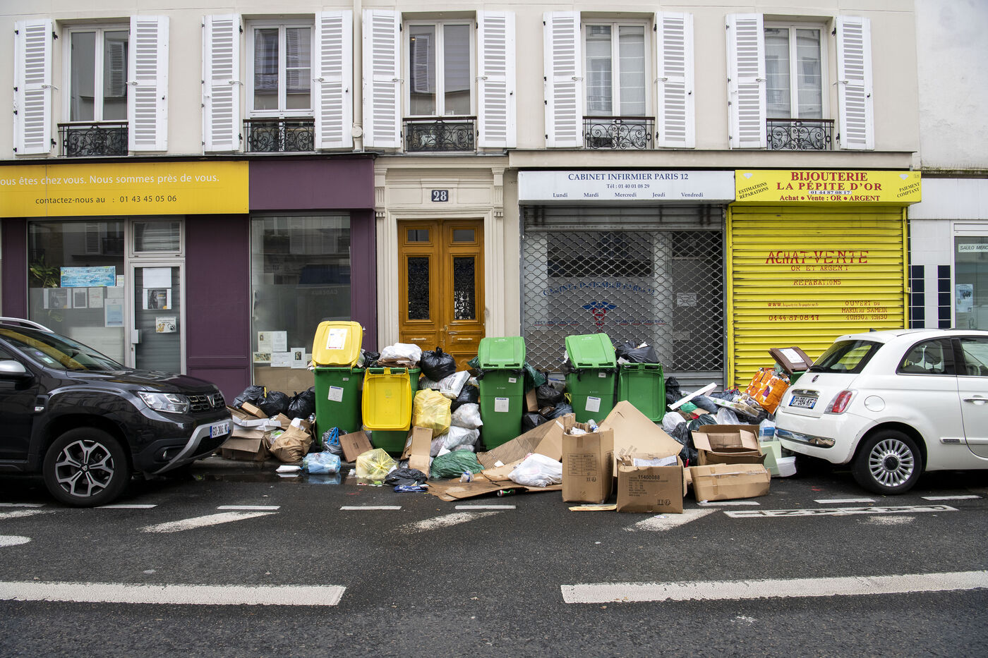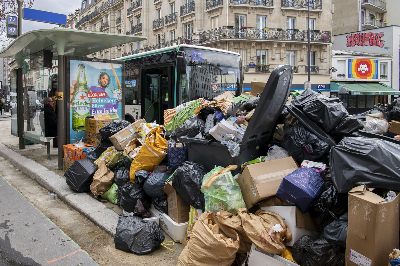 Garbage collectors' strike: Accumulation of garbage in the streets of the 12th district of Paris. The garbage collectors of the city of Paris are on strike since March 7 to protest against the pension reform.