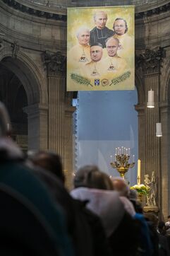 Mass for the beatification of the five priests martyred by the Commune in 1871, presided over by Cardinal Marcello Semeraro, Prefect of the Dicastery of the Causes of Saints. Saint-Sulpice Church.