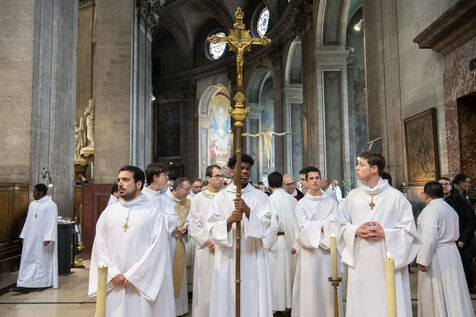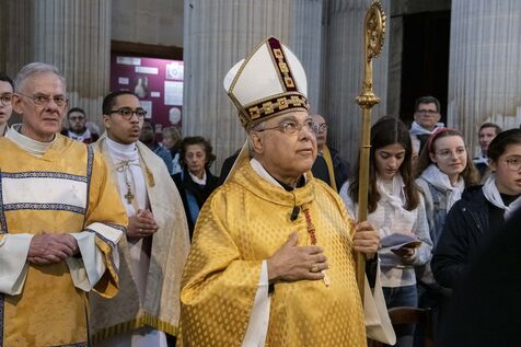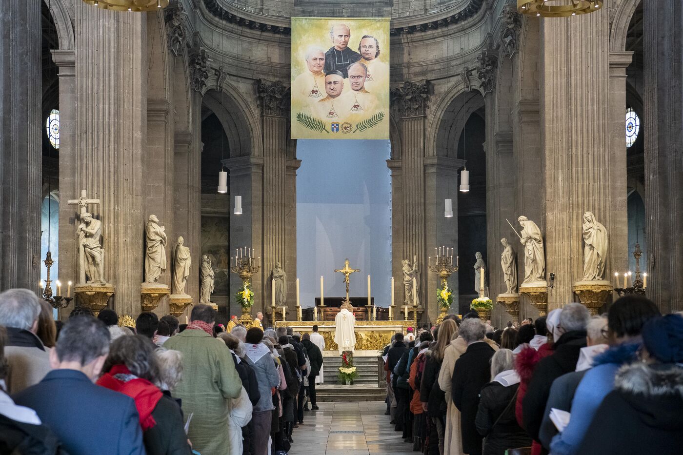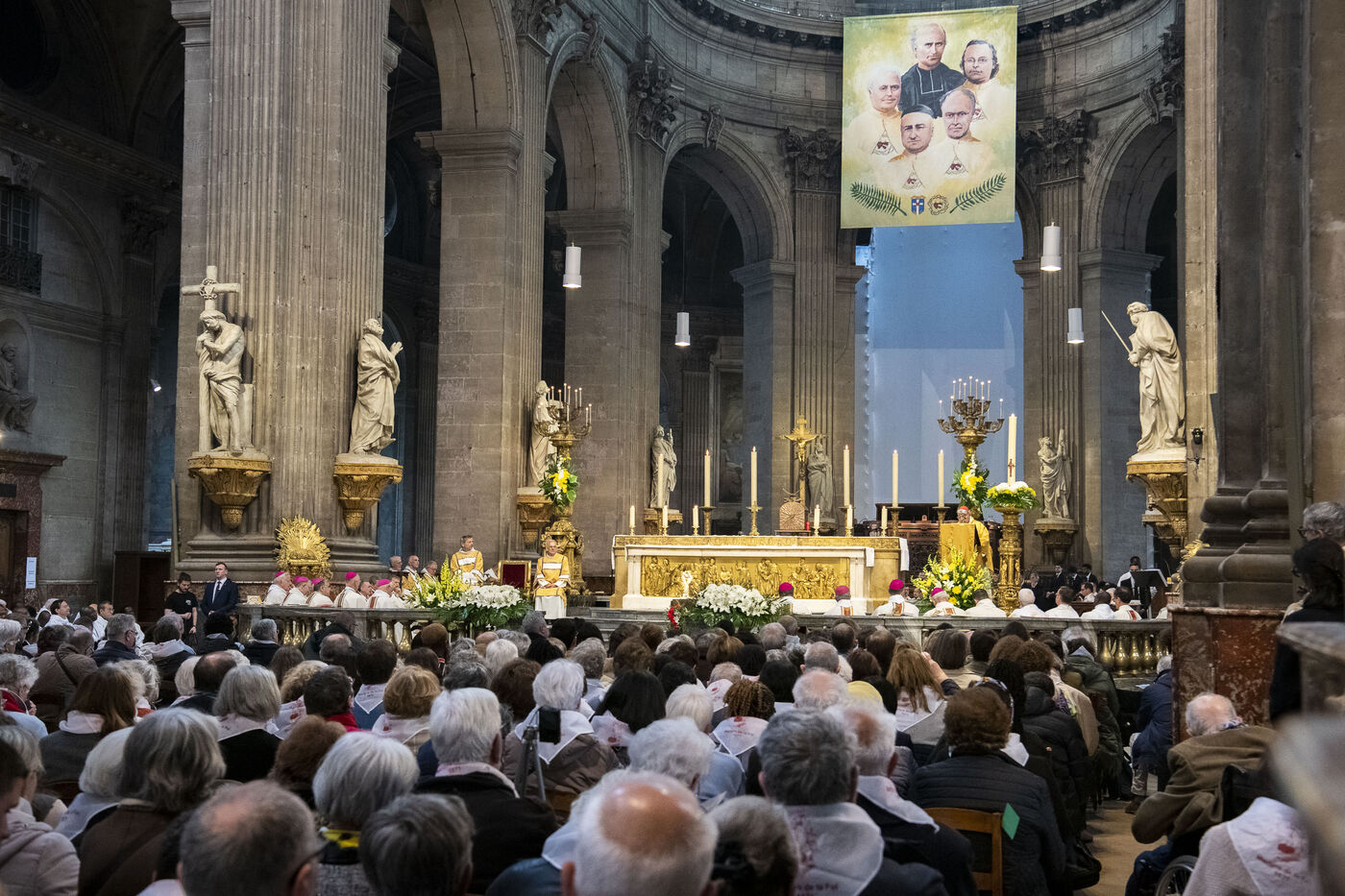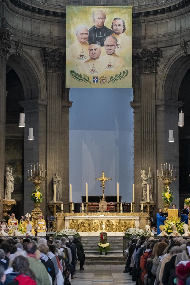 Messe de béatification des cinq prêtres martyrs de La Commune en 1871, présidée par le cardinal Marcello Semeraro, préfet du dicastère des causes des Saints. Eglise Saint-Sulpice.