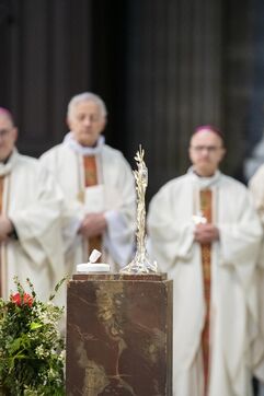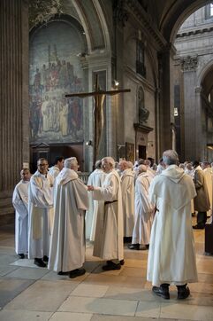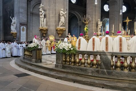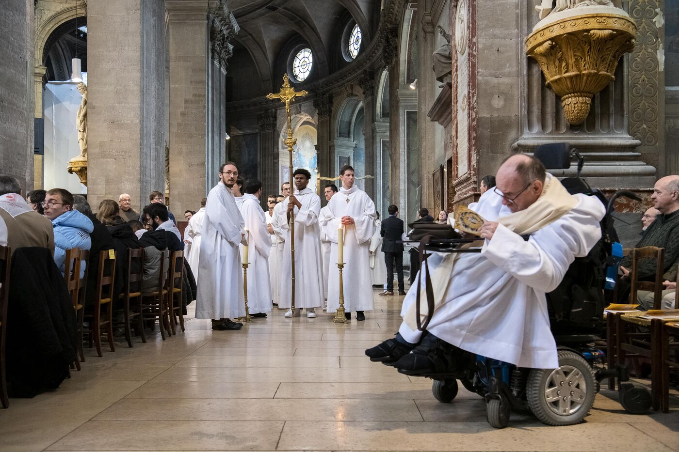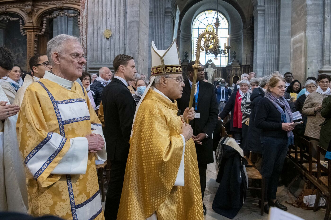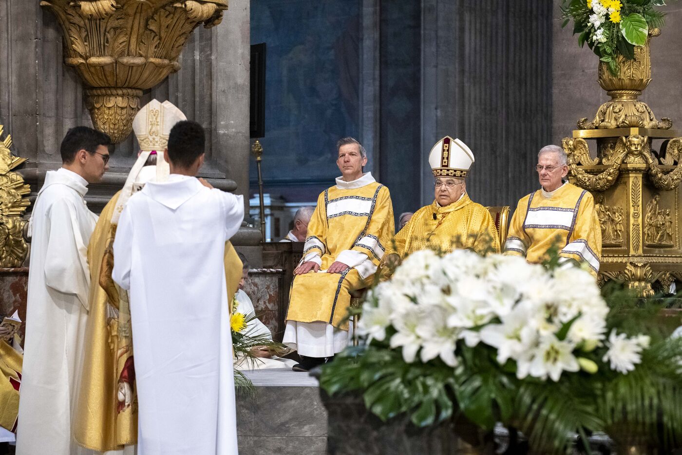 Messe de béatification des cinq prêtres martyrs de La Commune en 1871, présidée par le cardinal Marcello Semeraro, préfet du dicastère des causes des Saints. Eglise Saint-Sulpice.