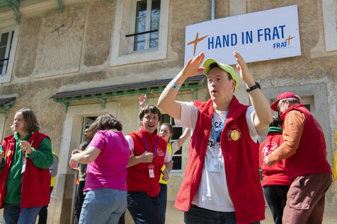 La commission Hand in FRAT propose une logistique adaptée afin que les jeunes porteurs d'un handicap vivent le pèlerinage et participent avec les autres à toutes les activités du fraternel.