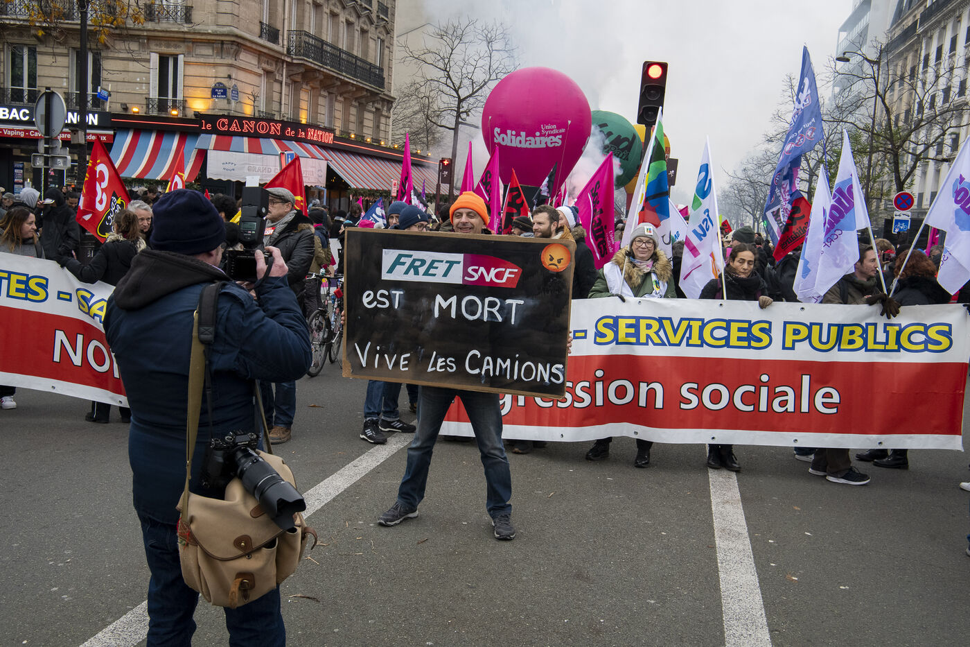Demonstration on the occasion of a one-day strike. The FO-CGT-CNT-SUD-FSU-Unef trade union confederation rallies to defend public services