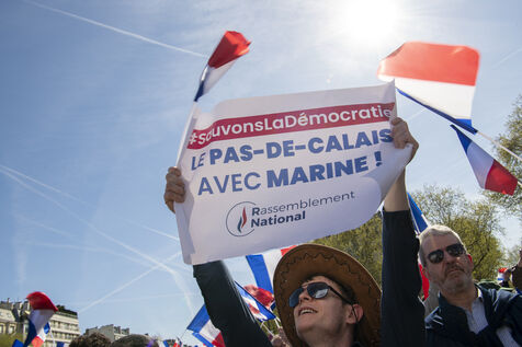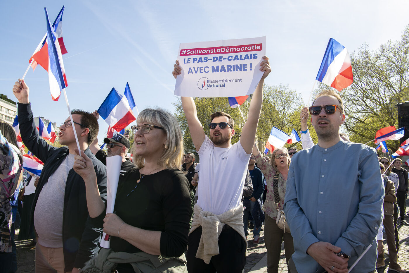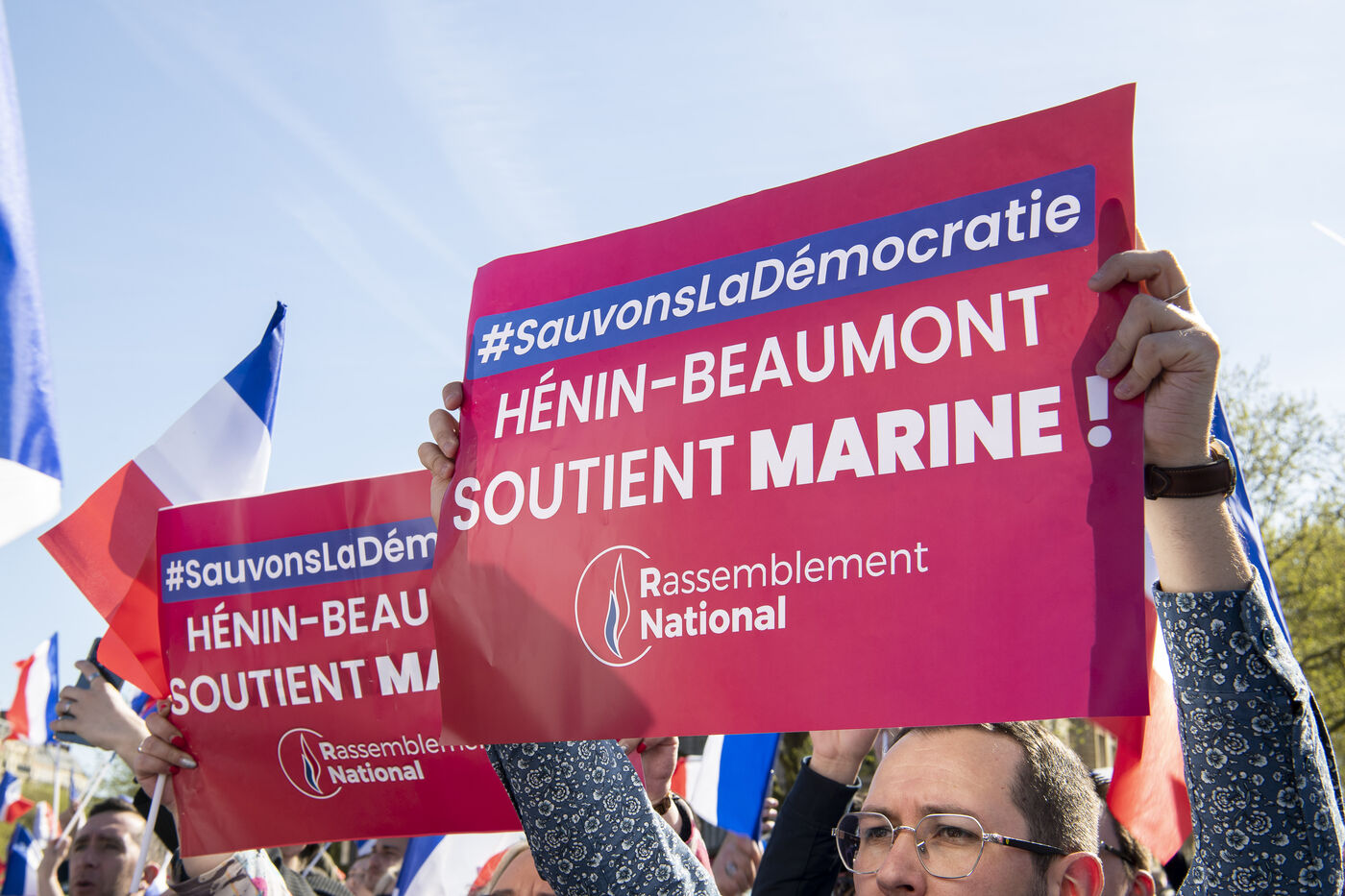 Rassemblement National (RN) meeting in support of Marine Le Pen, place Vauban