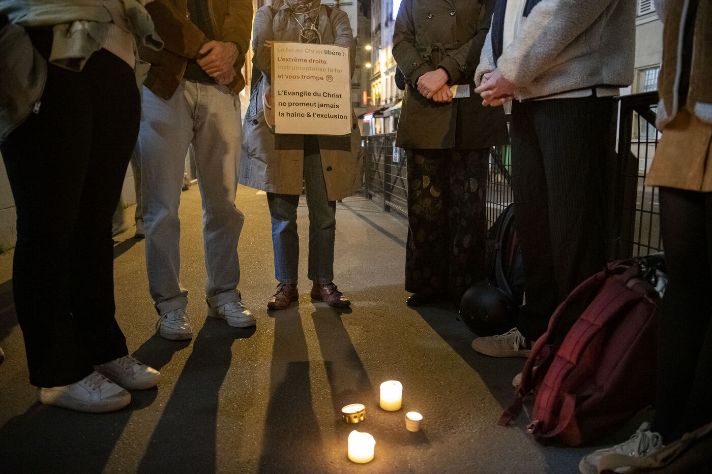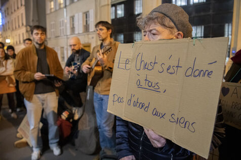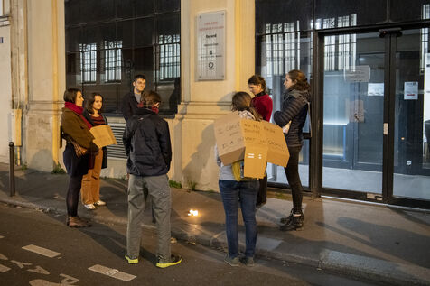 Un cercle de silence est organisé par le collectif Lutte et Contemplation, devant le siège des Editions Fayard, maison d'Eric Zemmour, pour interpeller le système médiatique et culturel qui rend possibles et rentables la diffusion et la normalisation de discours d extrême droite